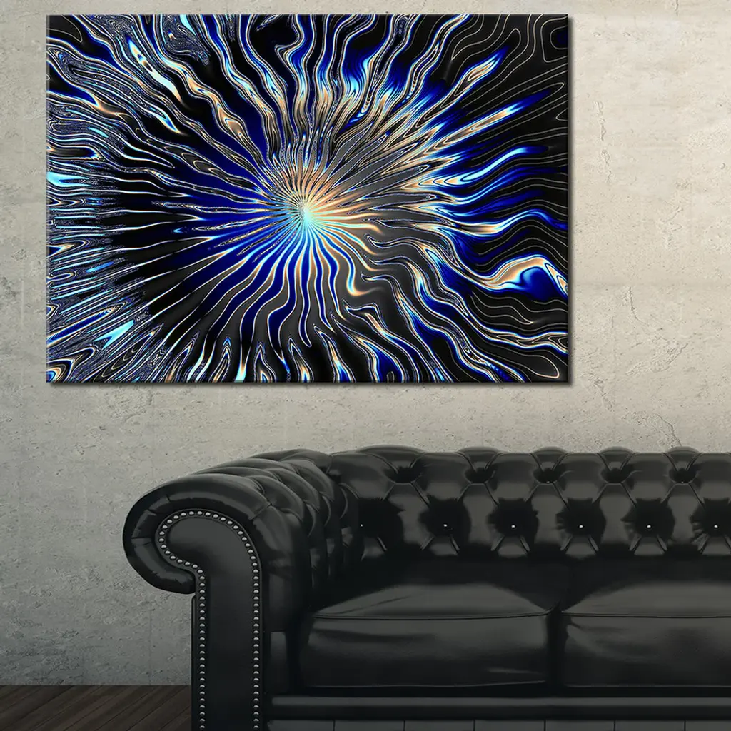 The Blue Rays from the Circle canvas art print is sure to make an impression on anyone who sees it. This artwork is gallery wrapped around a 1-inch solid wood frame and arrives carefully packaged and entirely ready to hang on the wall. Design Art only uses the highest resolution and pigments to ensure a crisp colorful print that is never faded or pixelated. This artwork is sure to be a conversation starter in any home or office.