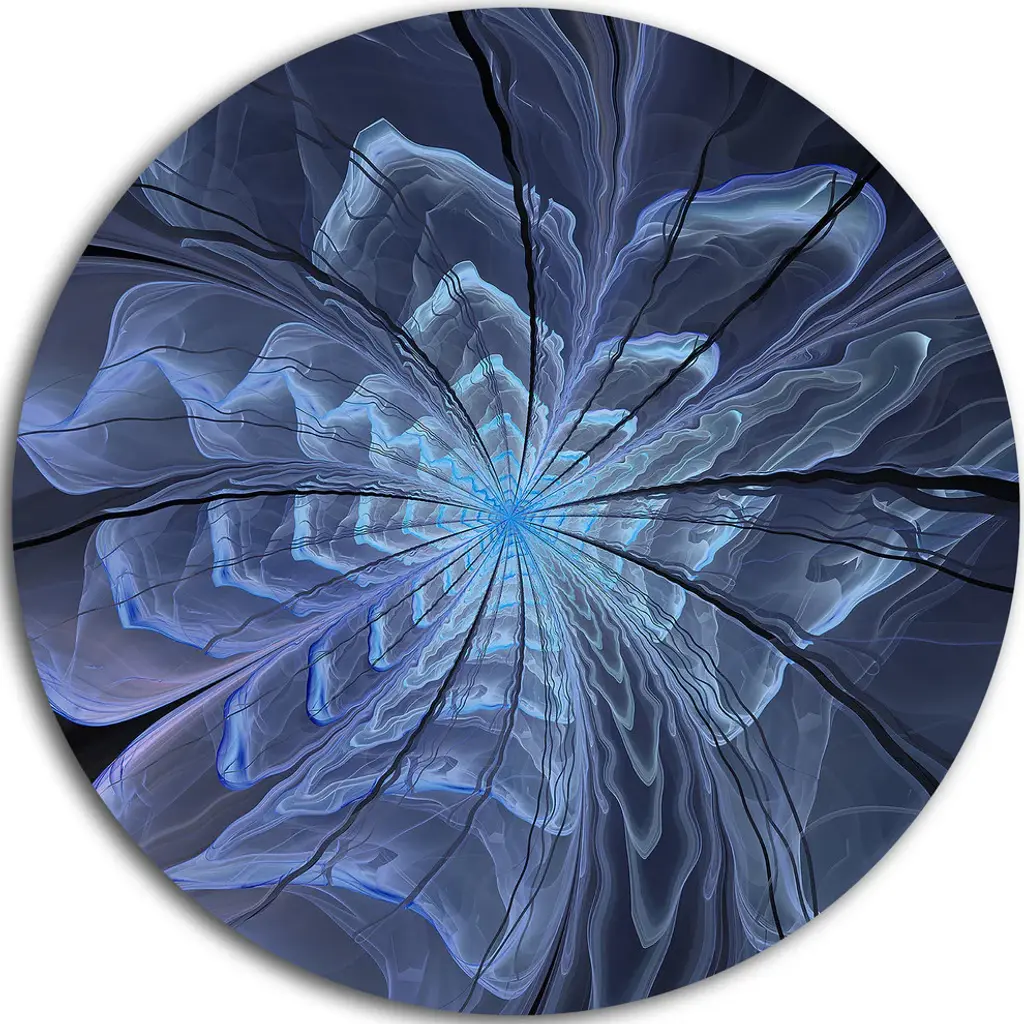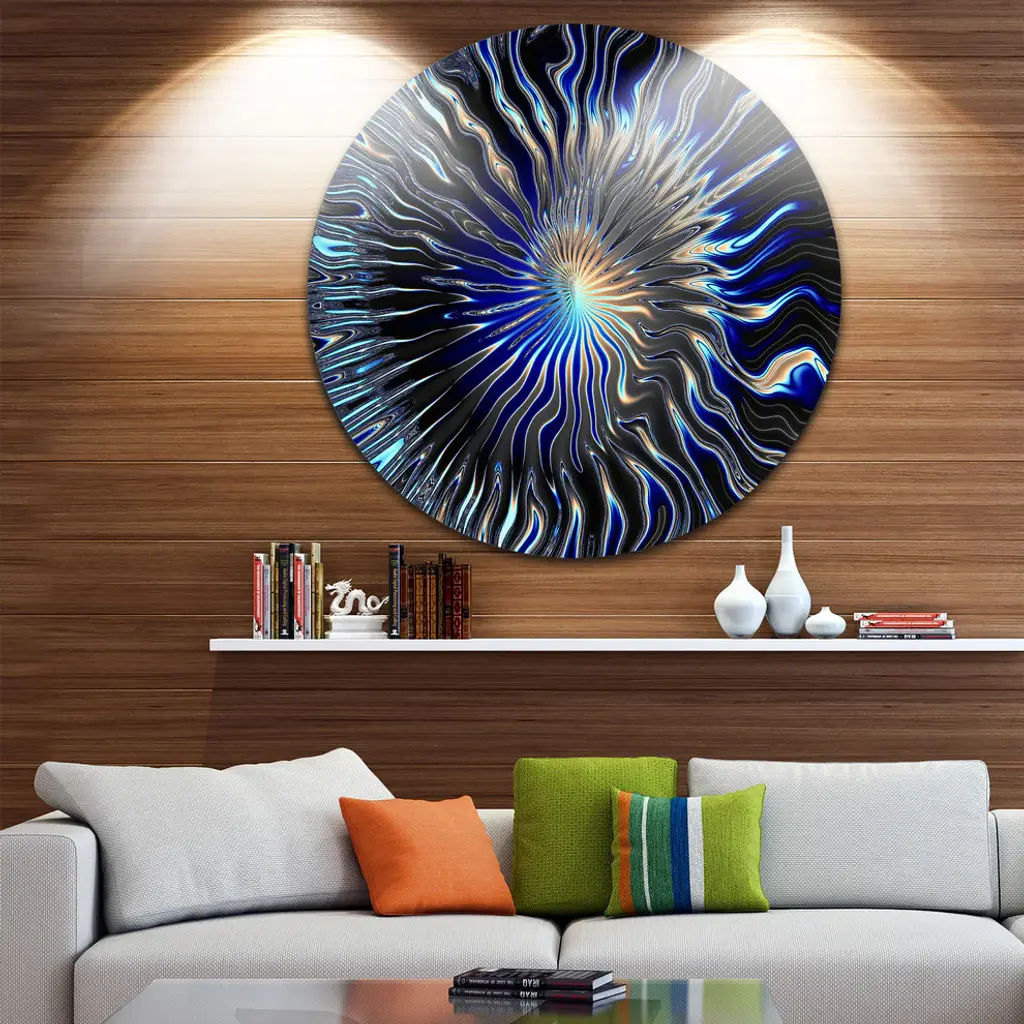 Blue Rays From The Circle, Abstract Art Large Disc Metal Wall Art, 36"