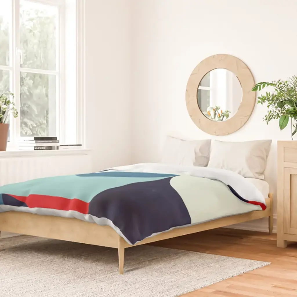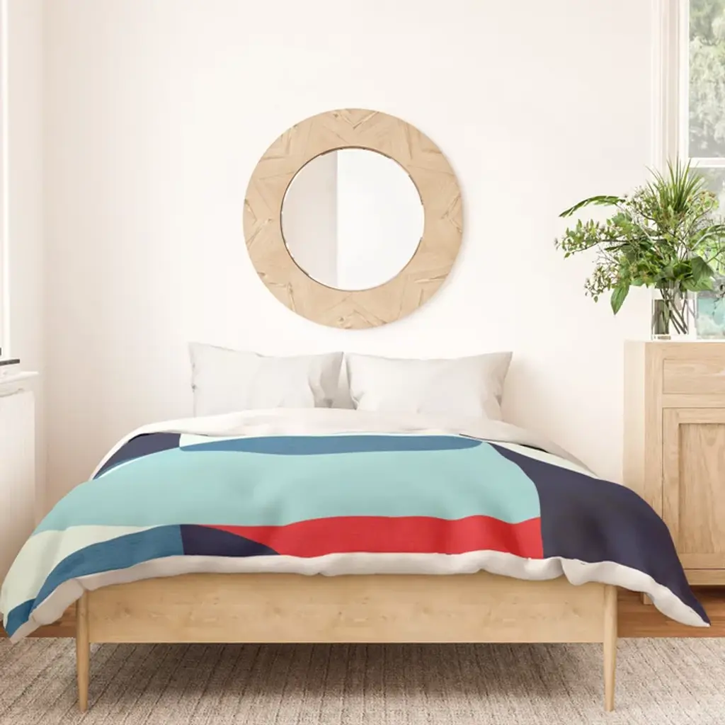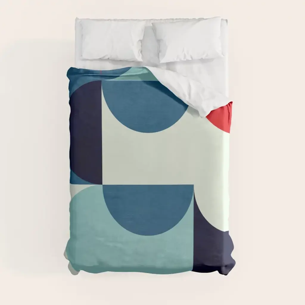 Blue Red White Navy Mcm Modern Geometric Artwork Duvet Cover
