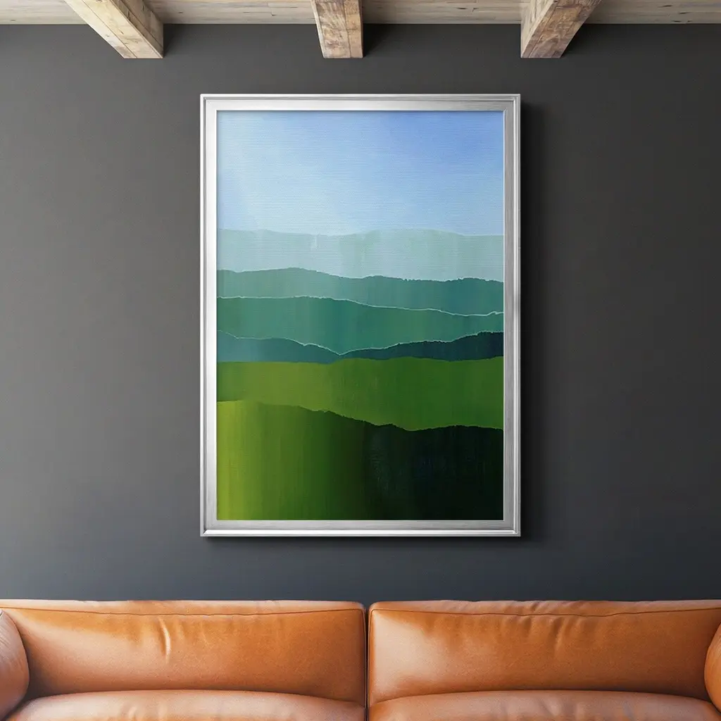 Blue Ridge Fade II Premium Framed Print - Ready to Hang A Premium Framed Print created to last. Framed in distressed wood and available in an array of sizes and colors Featuring a beveled a solid wood stretcher bar, each piece comes ready to hand 4 SIZES AVAILABLE 30.5''X42.5'' - Overall Size 26.5'X36.5'' - Overall Size 22.5''x30.5'' - Overall Size 18.5''x24.5'' - Overall Size Each piece is made to order. Each piece comes with hanging hardware. Made in the USA Ready to Hang