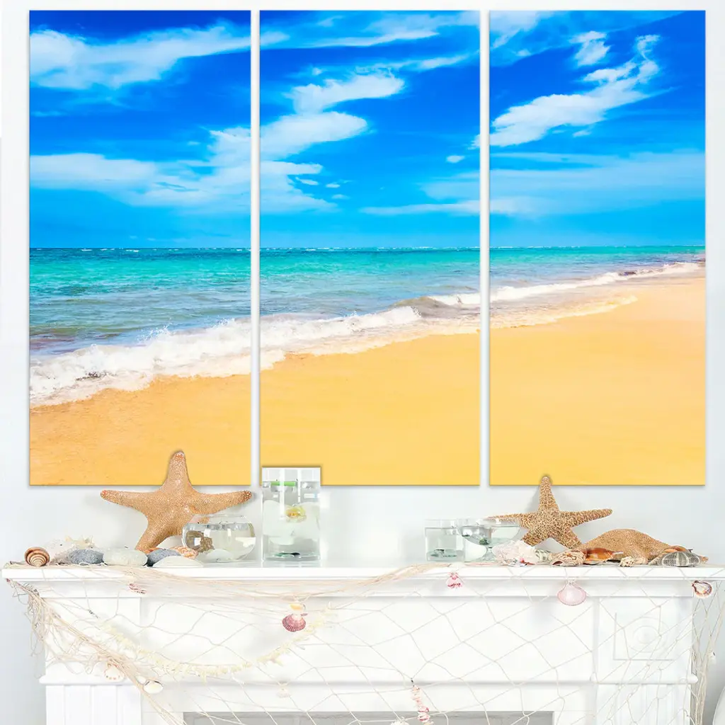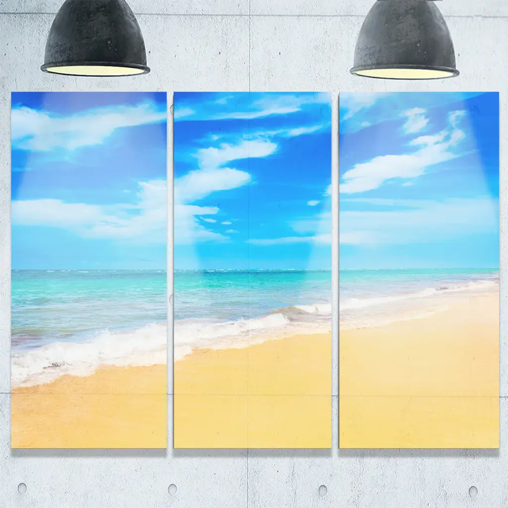 "Blue Sandy Tropical Sea Beach" Metal Wall Art, 3 Panels, 36"x28"