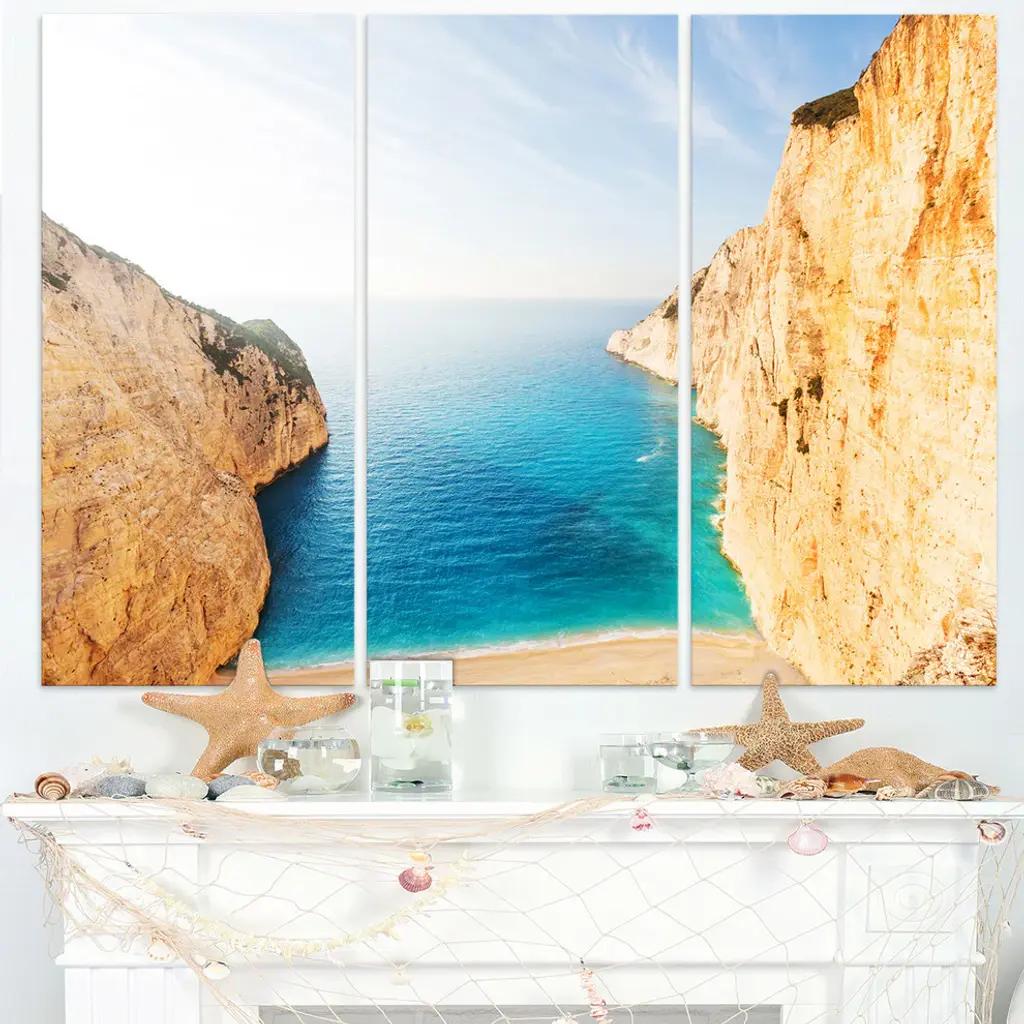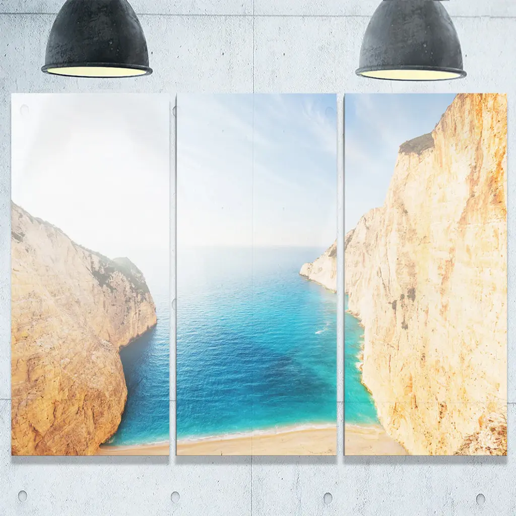"Blue Sea In Between Big Rocks" Metal Wall Art, 3 Panels, 36"x28"