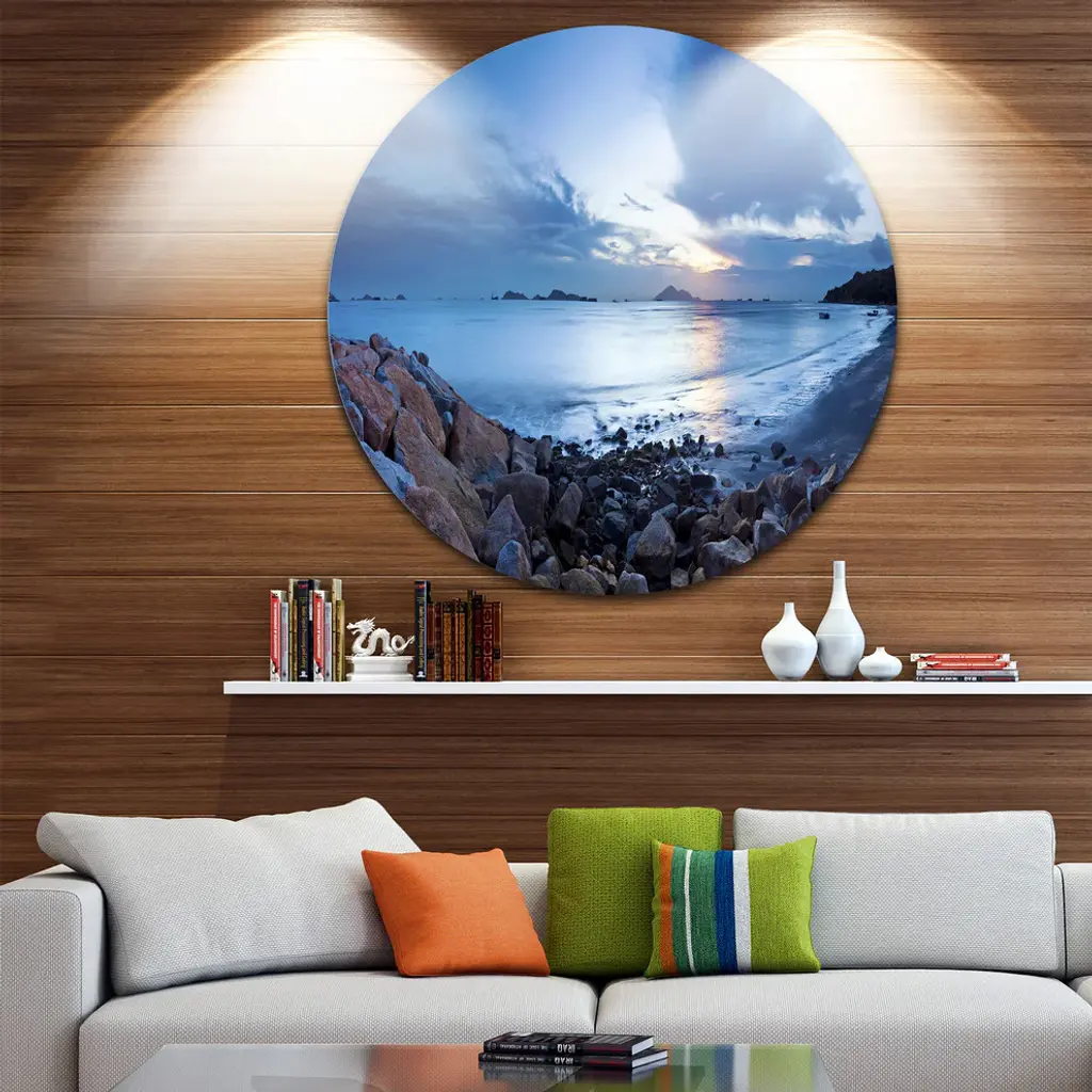 Blue Sea Sunset On Sandy Coastline, Seascape Disc Metal Wall Art, 36"