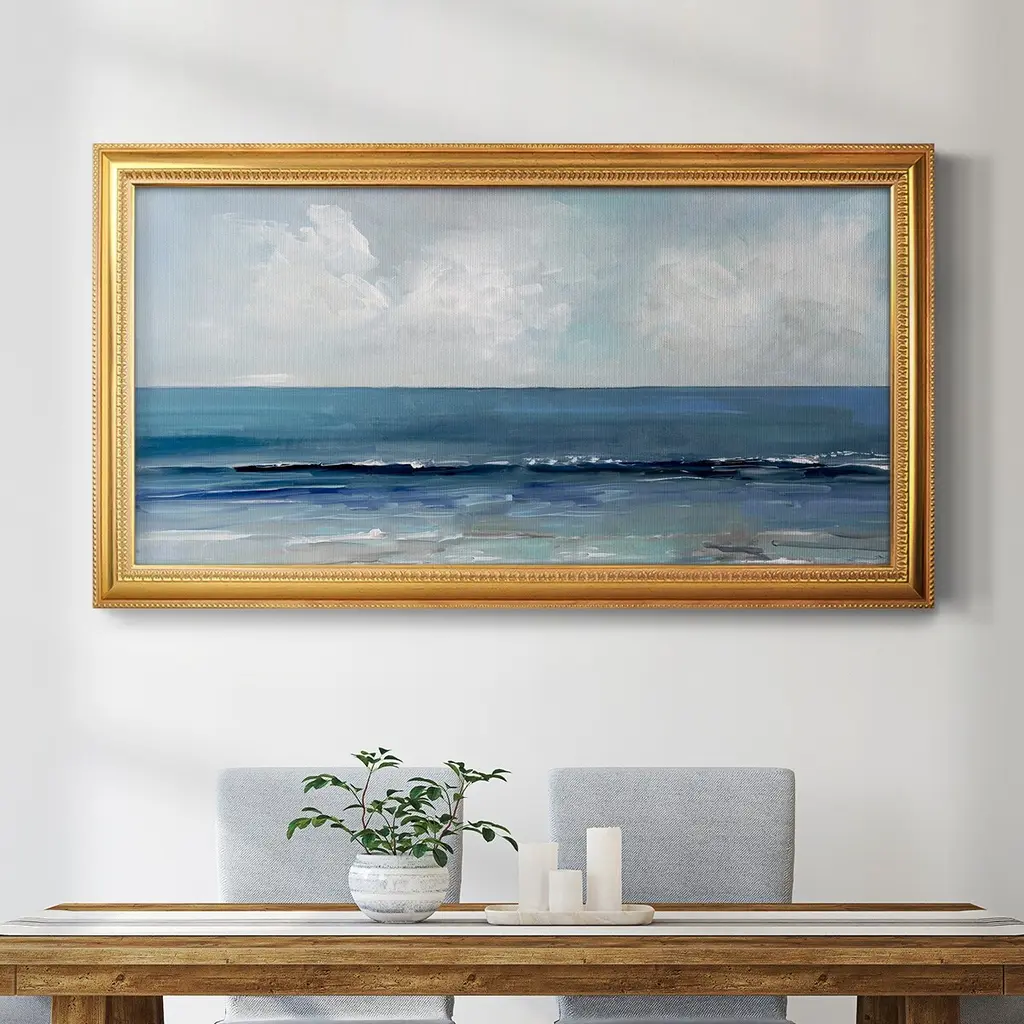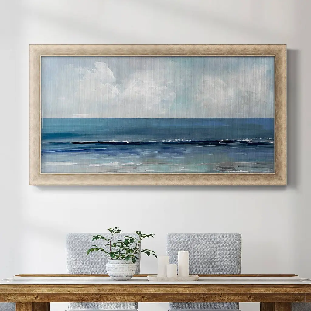 Blue Seas Premium Framed Canvas- Ready To Hang - 18x34 - Bronze