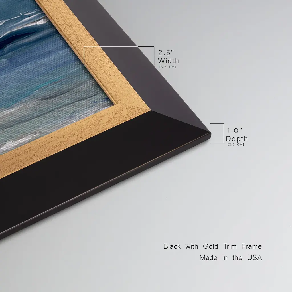 Blue Seas Premium Framed Canvas- Ready to Hang A Premium Framed Canvas created to last. Framed in distressed wood and available in an array of sizes and colors Featuring a beveled a solid wood stretcher bar, each piece comes ready to hand 3 SIZES AVAILABLE 21''X37'' - Overall Size 25''X45'' - Overall Size 29''x53'' - Overall Size Each piece is made to order. Each piece comes with hanging hardware. Made in the USA Ready to Hang Giclee Paper Print Acrylic Glass Beveled Matt Board