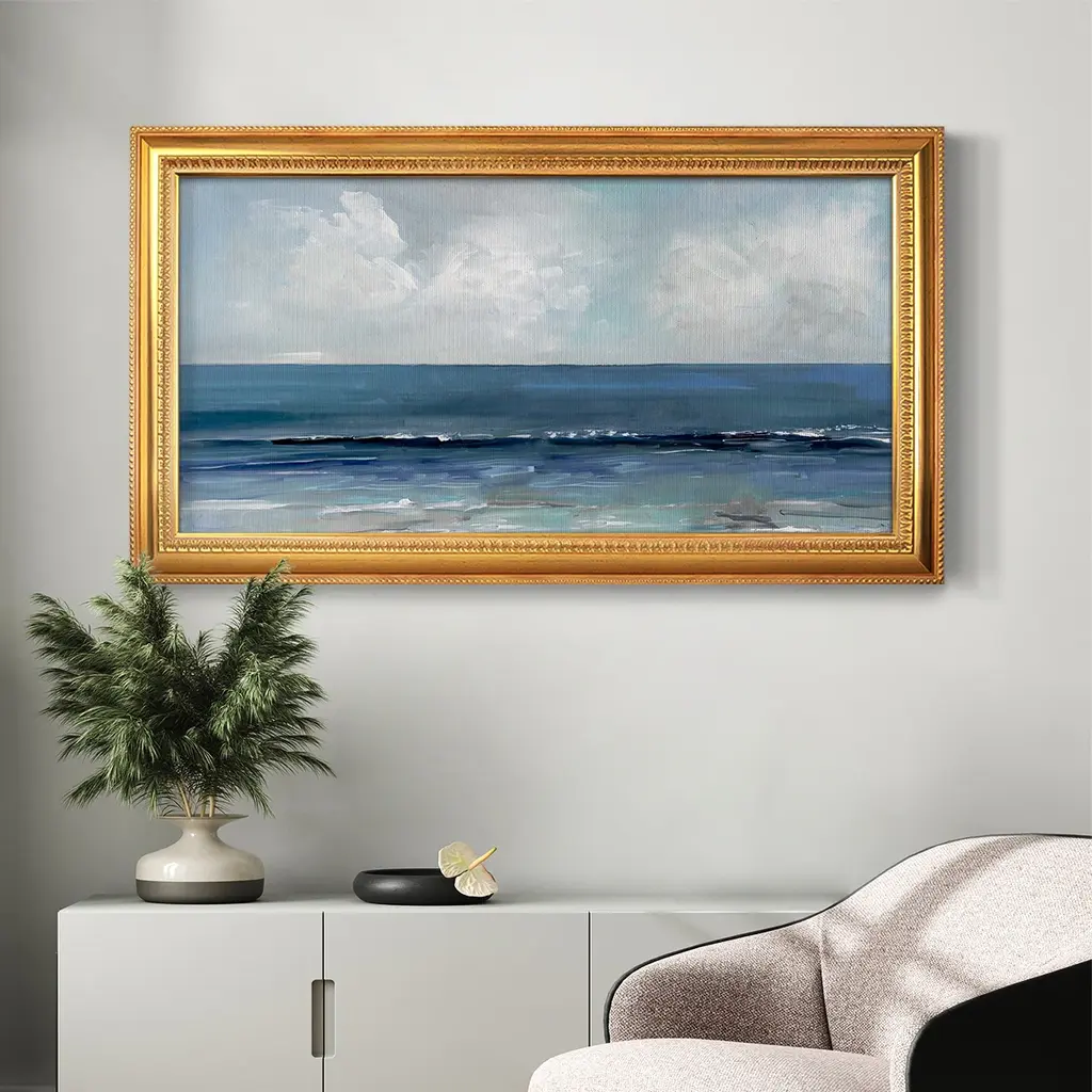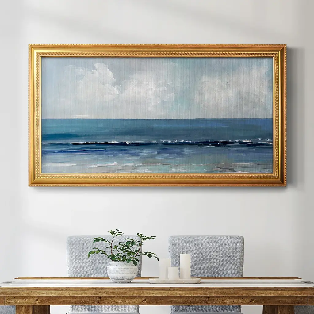 Blue Seas Premium Framed Canvas- Ready To Hang - 18x34 - Gold