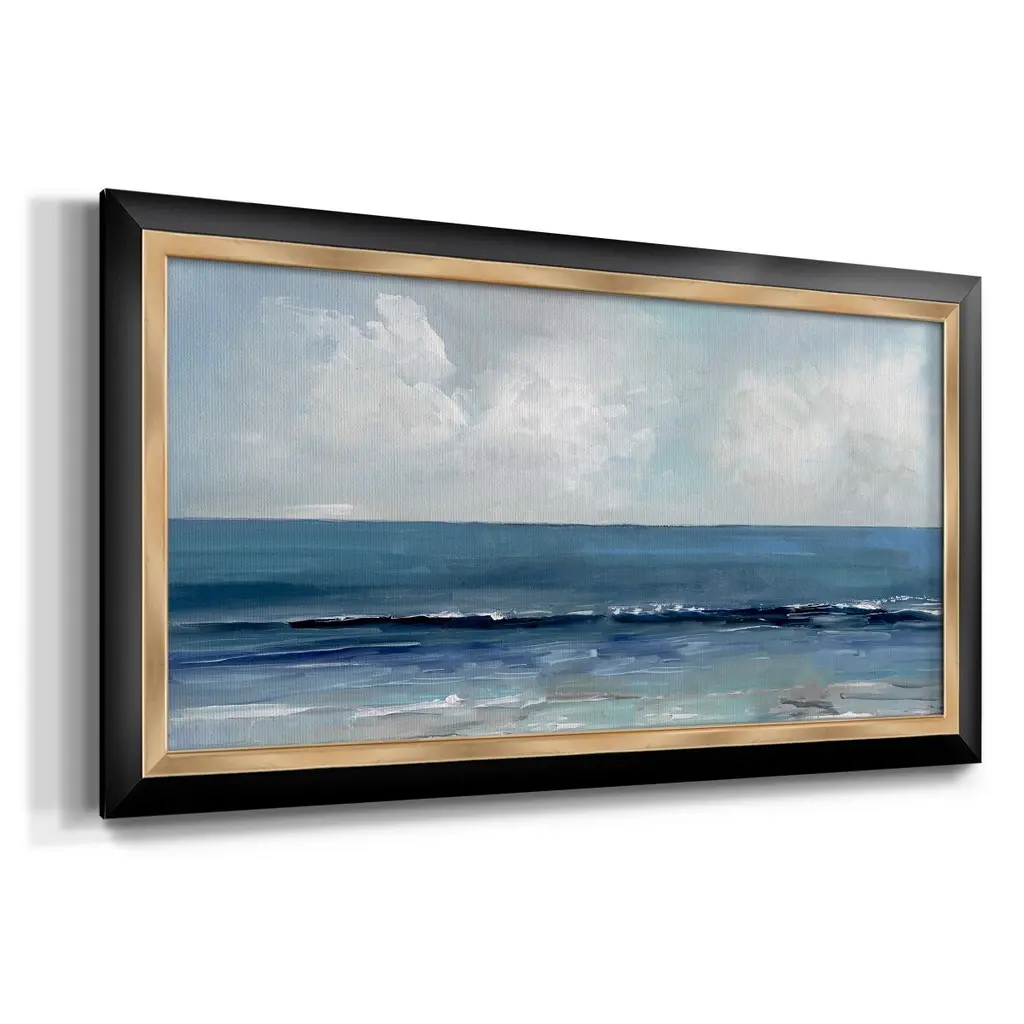 Blue Seas Premium Framed Canvas- Ready To Hang - 18x34 - Mahogany