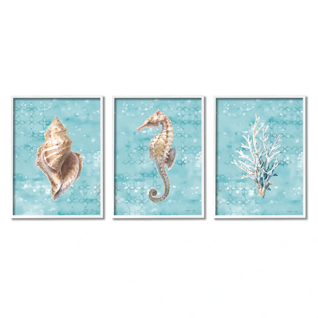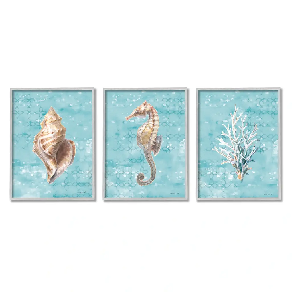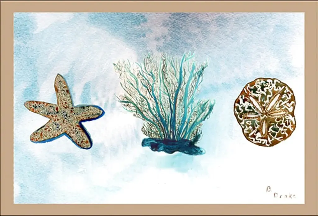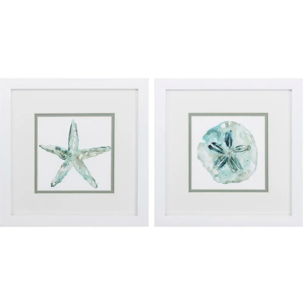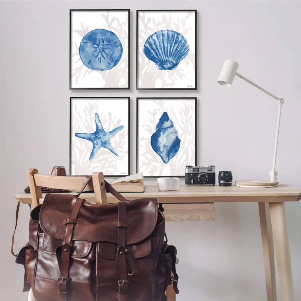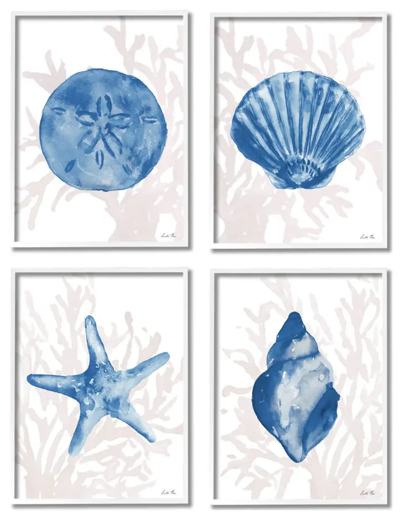 Blue Shells Starfish And Sand Dollar Over Seaweed,4pc, Each 16 X 20
