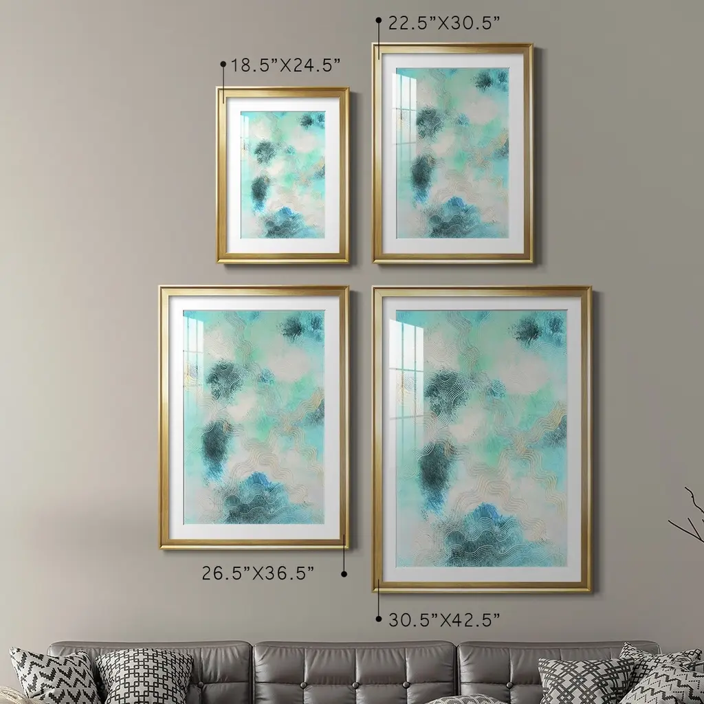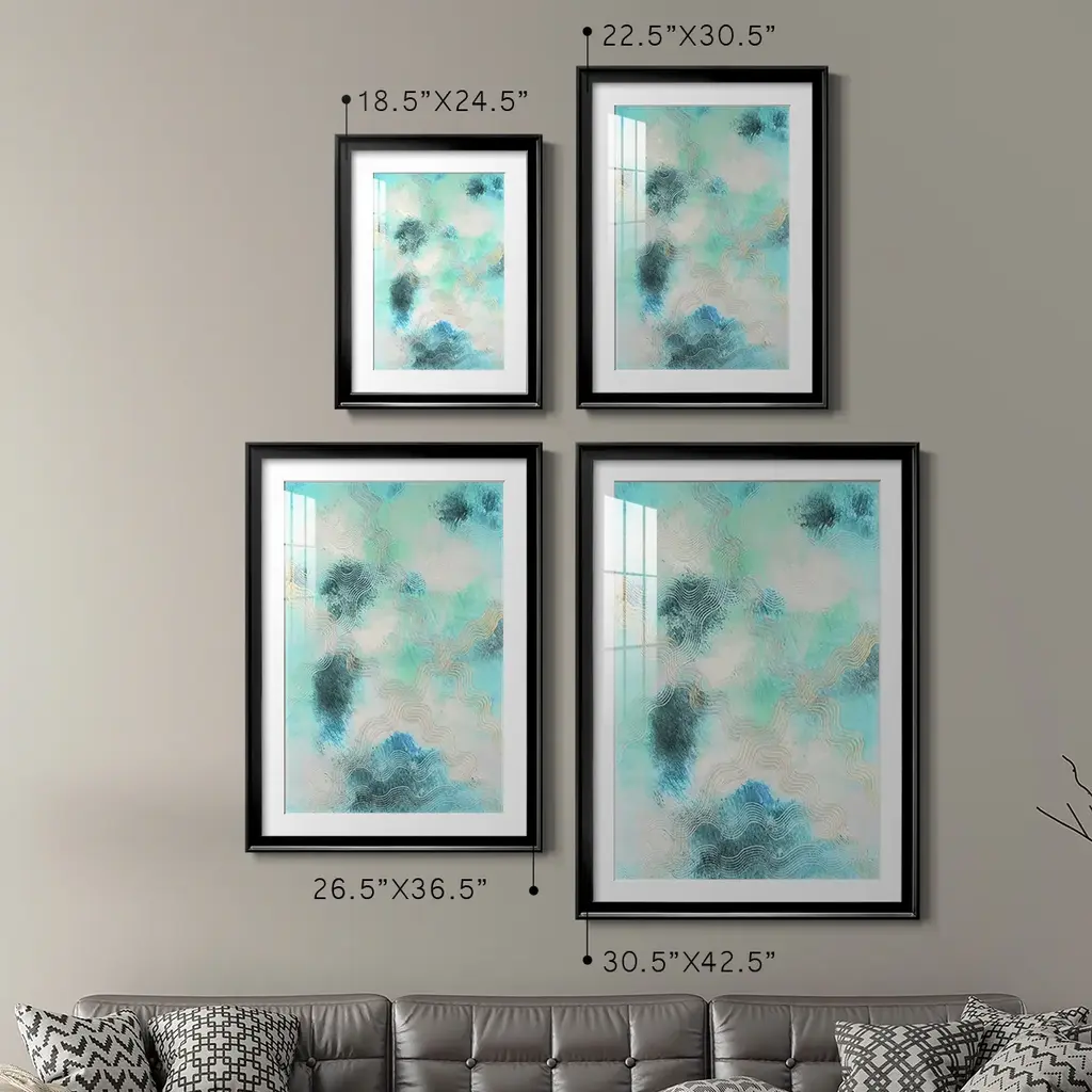 Blue Shift I Premium Framed Print - Ready to Hang A Premium Framed Print created to last. Framed in distressed wood and available in an array of sizes and colors Featuring a beveled a solid wood stretcher bar, each piece comes ready to hand 4 SIZES AVAILABLE 30.5''X42.5'' - Overall Size 26.5'X36.5'' - Overall Size 22.5''x30.5'' - Overall Size 18.5''x24.5'' - Overall Size Each piece is made to order. Each piece comes with hanging hardware. Made in the USA Ready to Hang Giclee Paper Print Acrylic Glass Beveled Matt Board