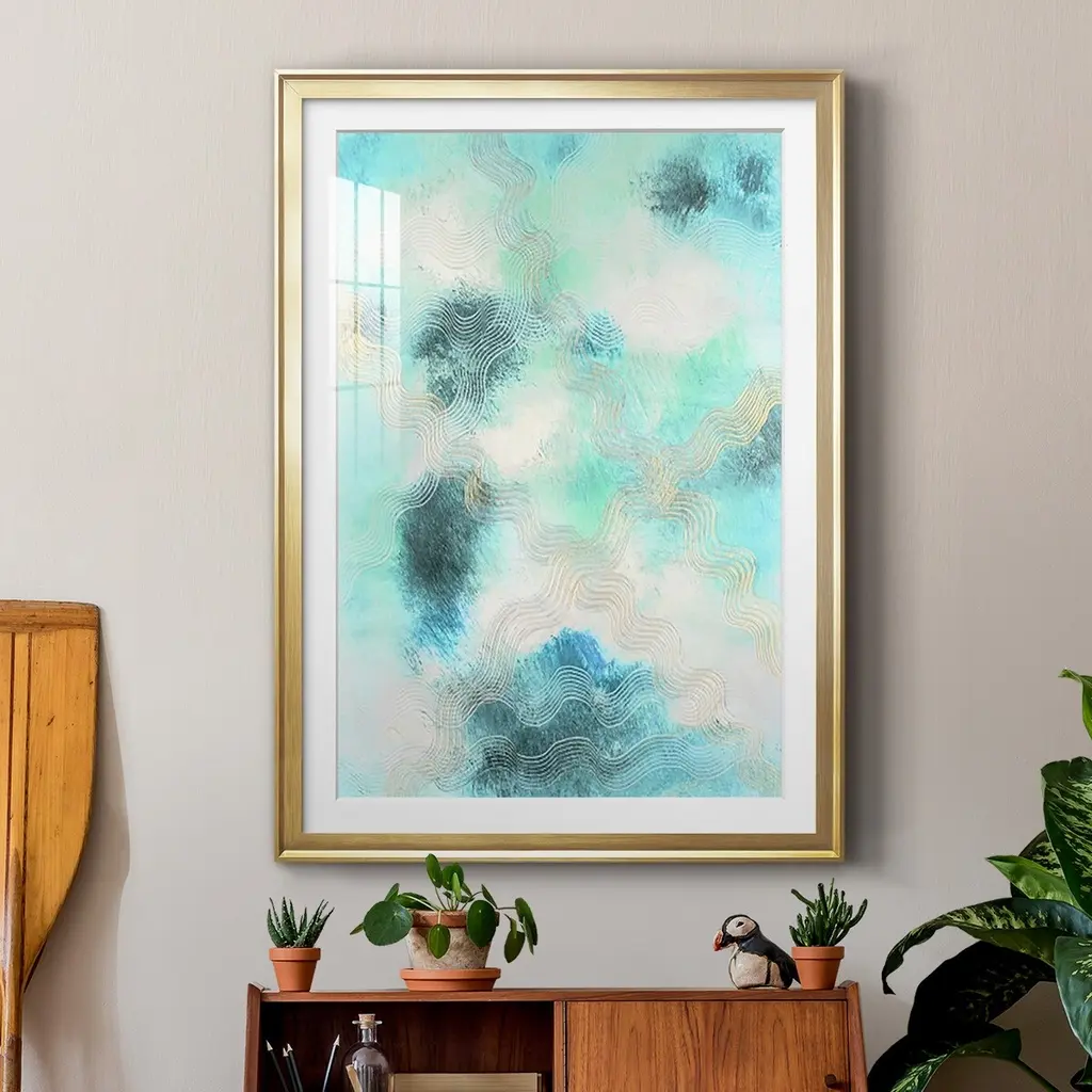 Blue Shift I Premium Framed Print - Ready to Hang A Premium Framed Print created to last. Framed in distressed wood and available in an array of sizes and colors Featuring a beveled a solid wood stretcher bar, each piece comes ready to hand 4 SIZES AVAILABLE 30.5''X42.5'' - Overall Size 26.5'X36.5'' - Overall Size 22.5''x30.5'' - Overall Size 18.5''x24.5'' - Overall Size Each piece is made to order. Each piece comes with hanging hardware. Made in the USA Ready to Hang Giclee Paper Print Acrylic Glass Beveled Matt Board