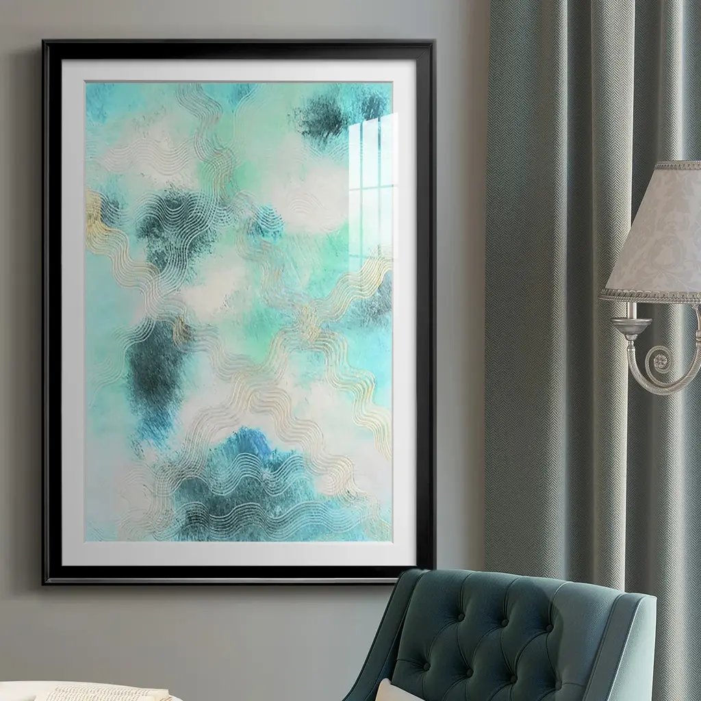 Blue Shift I Premium Framed Print - Ready to Hang A Premium Framed Print created to last. Framed in distressed wood and available in an array of sizes and colors Featuring a beveled a solid wood stretcher bar, each piece comes ready to hand 4 SIZES AVAILABLE 30.5''X42.5'' - Overall Size 26.5'X36.5'' - Overall Size 22.5''x30.5'' - Overall Size 18.5''x24.5'' - Overall Size Each piece is made to order. Each piece comes with hanging hardware. Made in the USA Ready to Hang Giclee Paper Print Acrylic Glass Beveled Matt Board