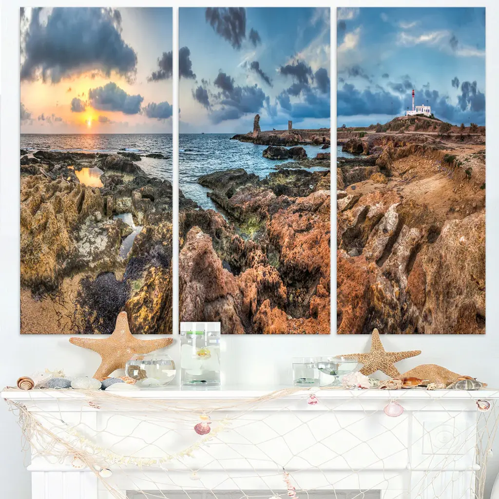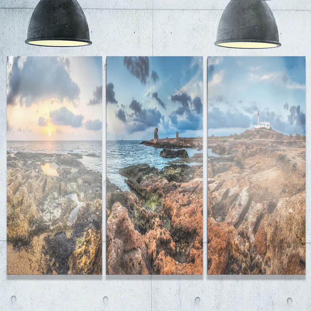 "Blue Sky Over Rough Rocky Coast" Metal Wall Art, 3 Panels, 36"x28"