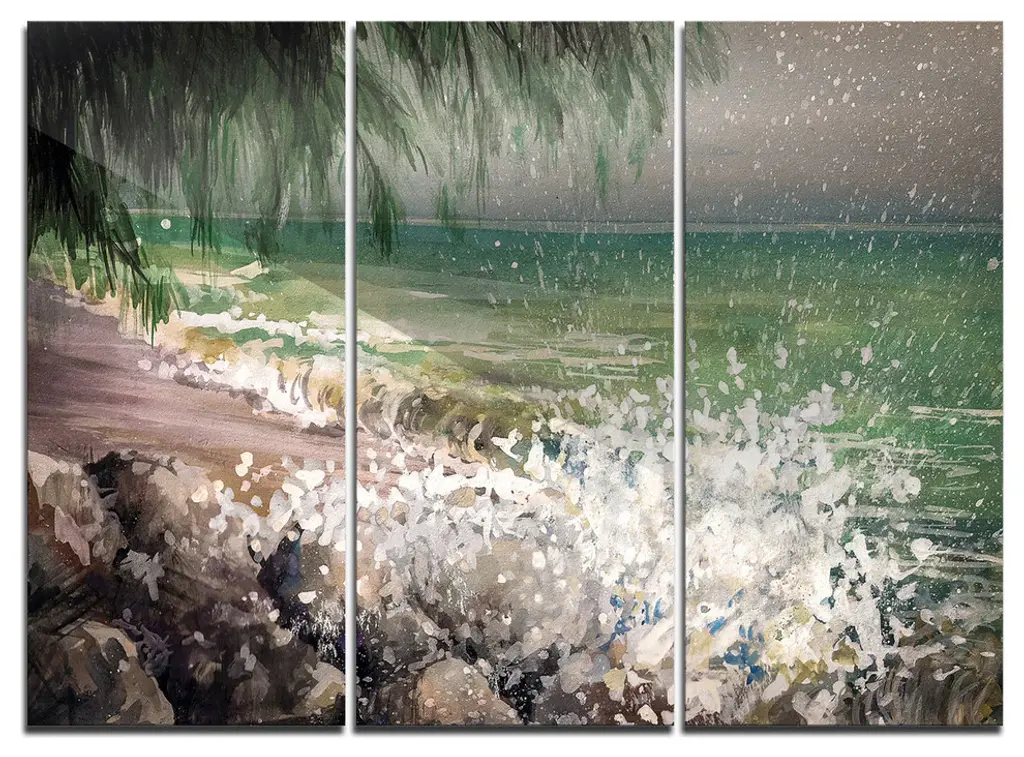 "Blue Sky Reflection In The Lake" Photo Metal Wall Art, 3 Panels, 28"x36"