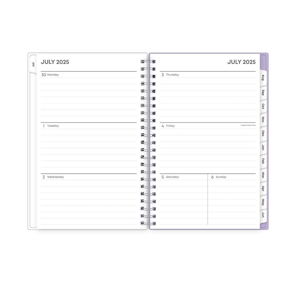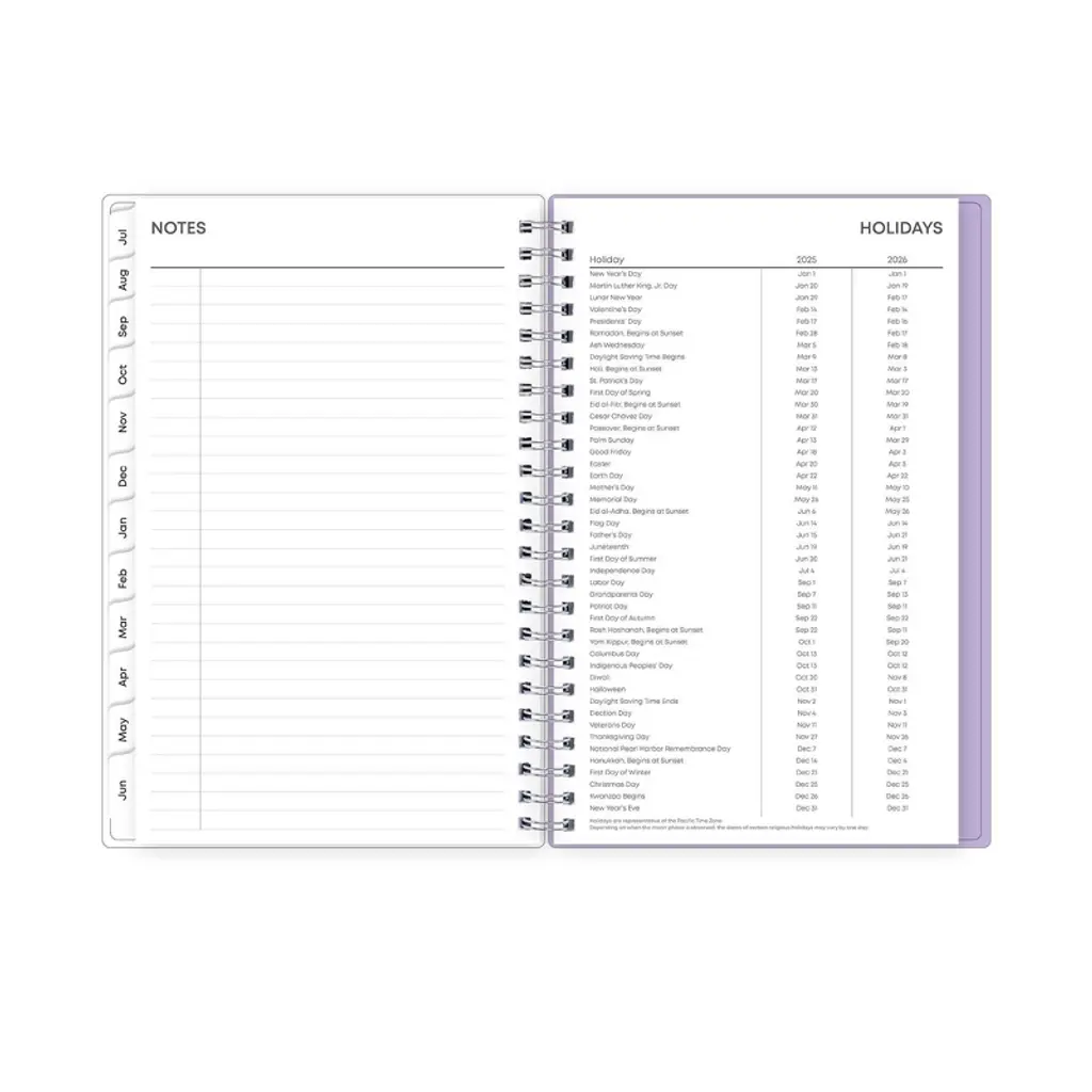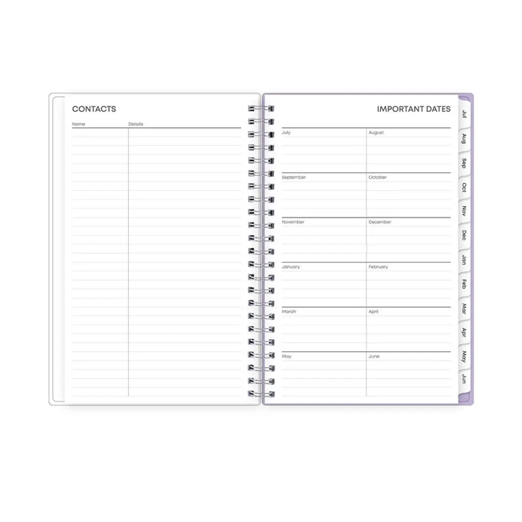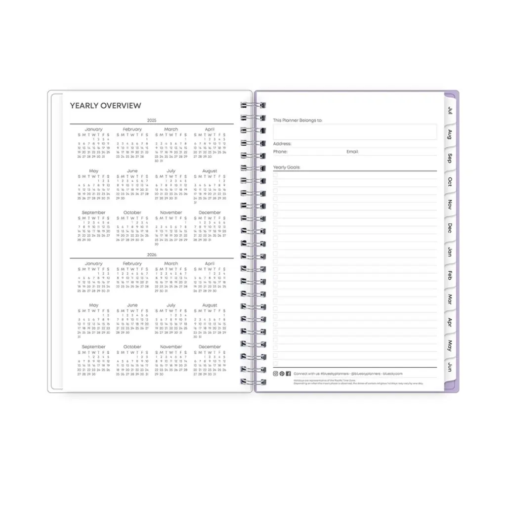Stay organized and write your goals, plans, and appointments in a sturdy academic planner! The 2025-2026 school year planner from Blue Sky has simple lined weekly layouts, tabbed monthly views, and extra writing space to help you find focus and calm. Ideal for students, teachers, and parents, the Blue Sky productivity planner provides a peaceful place to keep track of your schedule and jot down ideas. It covers all your scheduling needs from July 2025 to June 2026 and has a crease-resistant, flexible cover to withstand travel and daily use.