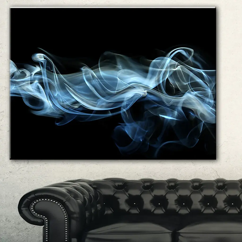 The Blue Smoke in Black canvas art print is sure to make an impression on anyone who sees it. This artwork is gallery wrapped around a 1-inch solid wood frame and arrives carefully packaged and entirely ready to hang on the wall. Design Art only uses the highest resolution and pigments to ensure a crisp colorful print that is never faded or pixelated. This artwork is sure to be a conversation starter in any home or office.
