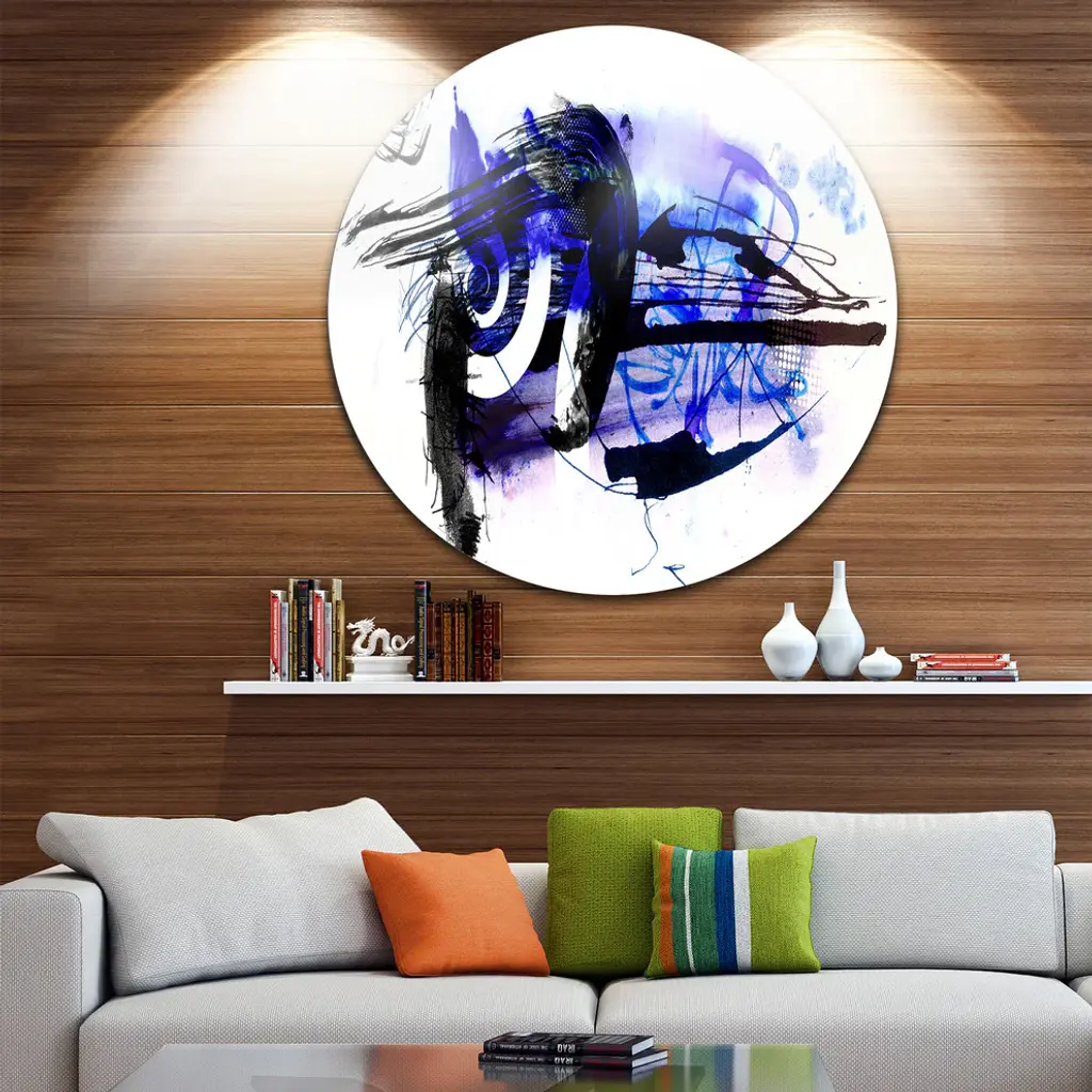 Bring Contemporary Abstraction to your home with this large Circle Metal wall art. This Blue Stain Abstract Metal Artwork makes it the focal point of any room or office. - White Gloss Coating ensures colors are extra vibrant with light reflection.- Aluminum grade Sheet Metal with 1 inch mounting frame on the back giving the illusion that the artwork is floating on the wall..- Mounting Brackets are included along with instructions.- High Quality Digital images are created directly into a glossy aluminum panel producing a stunning and captivating print into the glossy finish of the metal.- Water, Fire and Scratch resistant HD Aluminum panels.- Looks better than any photo paper and guaranteed to last at least 20 years- Easy to clean with a microfiber cloth. Colors are far superior to regular Canvas Art. - Easy to Hang