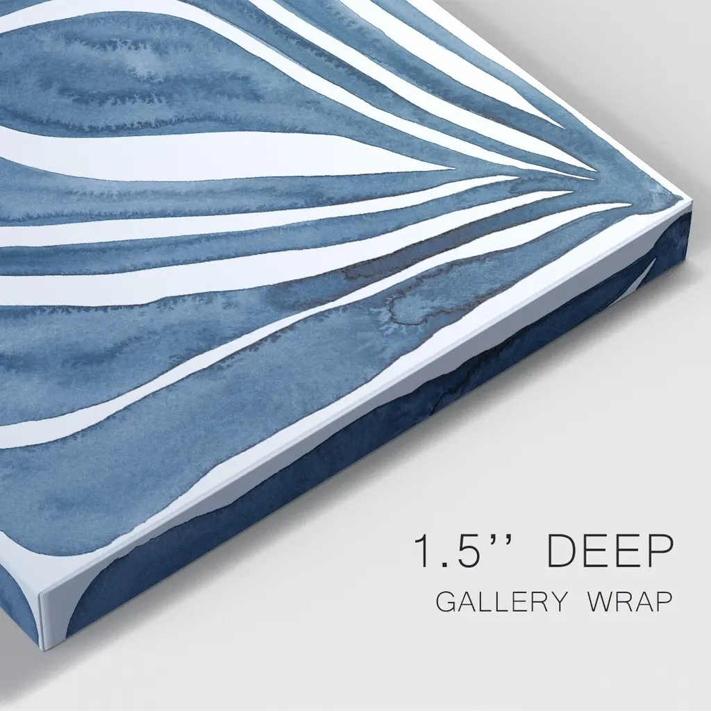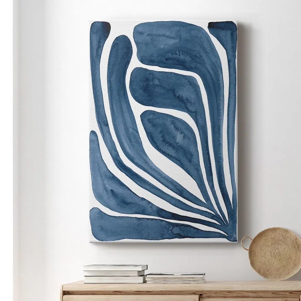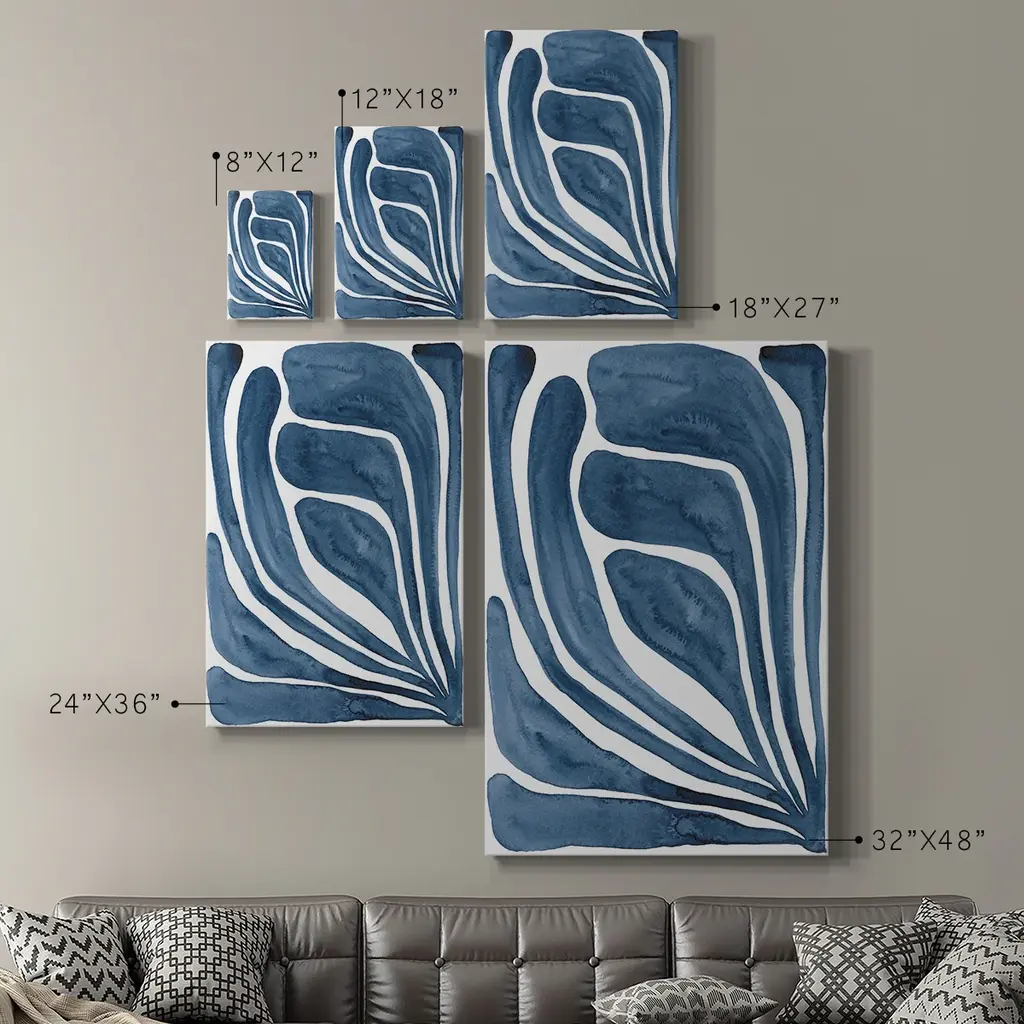 Blue Stylized Leaf I Premium Gallery Wrapped Canvas - Ready to Hang A premium hand stretched gallery wrapped canvas print created to last. Featuring a beveled a solid wood stretcher bar, each piece comes ready to hand 6 SIZES AVAILABLE 8''X12'' - Overall Size 12''X18'' - Overall Size 18''X27'' - Overall Size 24''x36'' - Overall Size 32''x48'' - Overall Size 40''x60'' - Overall Size Each piece is made to order. Built to Last Each piece comes ready to hang Solid wood stretcher Fade and Water resistant Made domestically