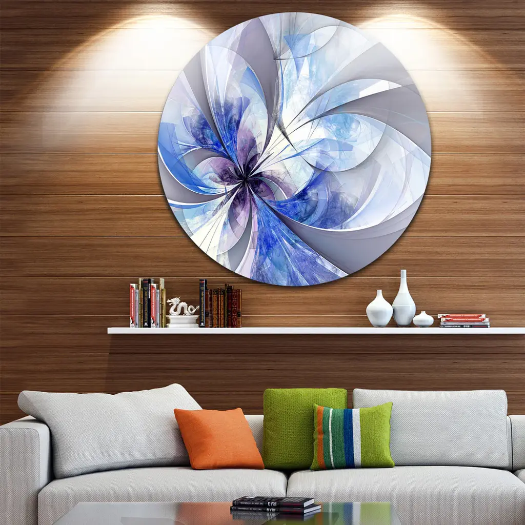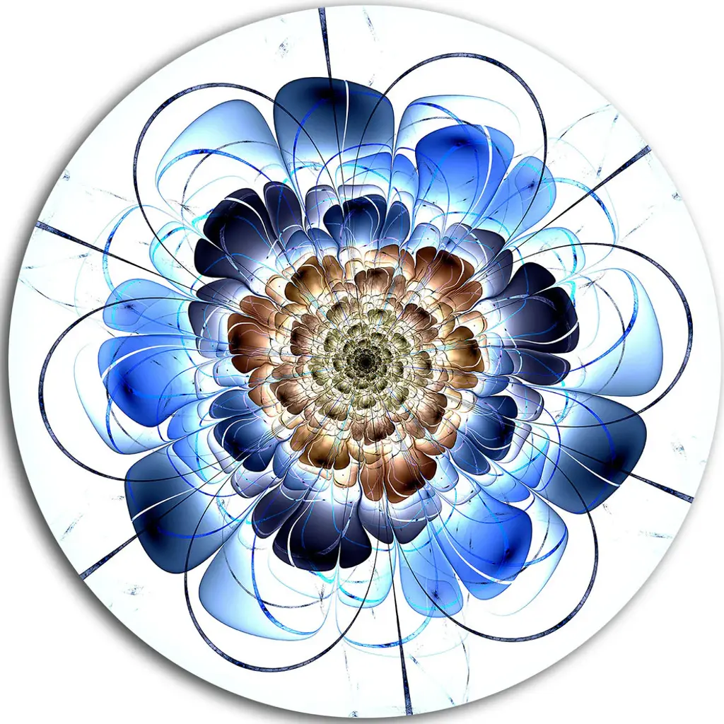 Blue Symmetrical Fractal Flower, Modern Floral Round Wall Art, 36"