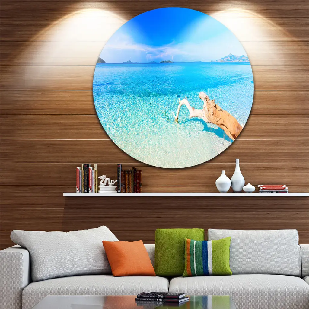 Blue Tropical Beach Panorama, Photo Disc Metal Wall Art, 38"