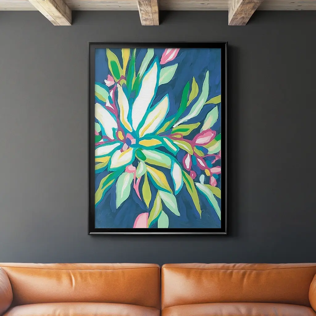 Blue Tropics I Premium Framed Print - Ready to Hang A Premium Framed Print created to last. Framed in distressed wood and available in an array of sizes and colors Featuring a beveled a solid wood stretcher bar, each piece comes ready to hand 4 SIZES AVAILABLE 30.5''X42.5'' - Overall Size 26.5'X36.5'' - Overall Size 22.5''x30.5'' - Overall Size 18.5''x24.5'' - Overall Size Each piece is made to order. Each piece comes with hanging hardware. Made in the USA Ready to Hang