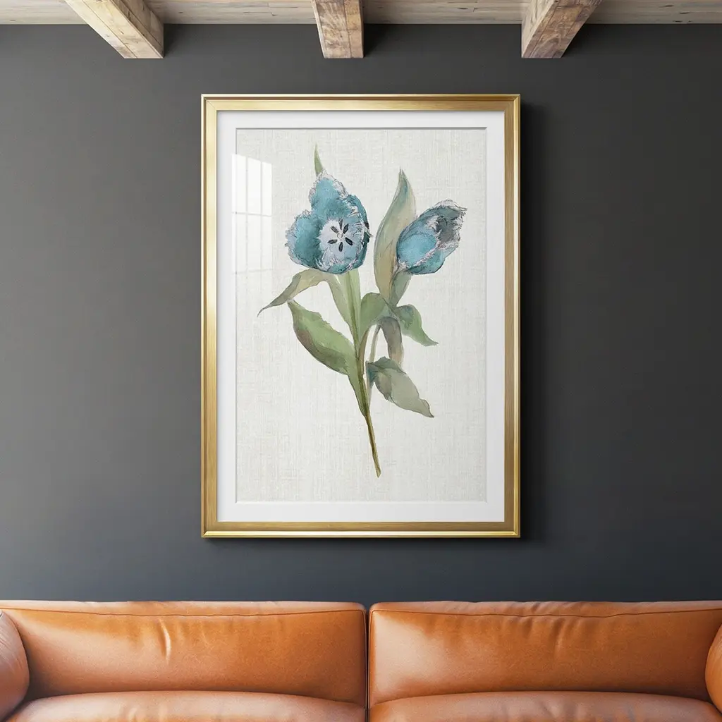 Blue Tulip Picks I Premium Framed Print - Ready to Hang A Premium Framed Print created to last. Framed in distressed wood and available in an array of sizes and colors Featuring a beveled a solid wood stretcher bar, each piece comes ready to hand 4 SIZES AVAILABLE 30.5''X42.5'' - Overall Size 26.5'X36.5'' - Overall Size 22.5''x30.5'' - Overall Size 18.5''x24.5'' - Overall Size Each piece is made to order. Each piece comes with hanging hardware. Made in the USA Ready to Hang Giclee Paper Print Acrylic Glass Beveled Matt Board