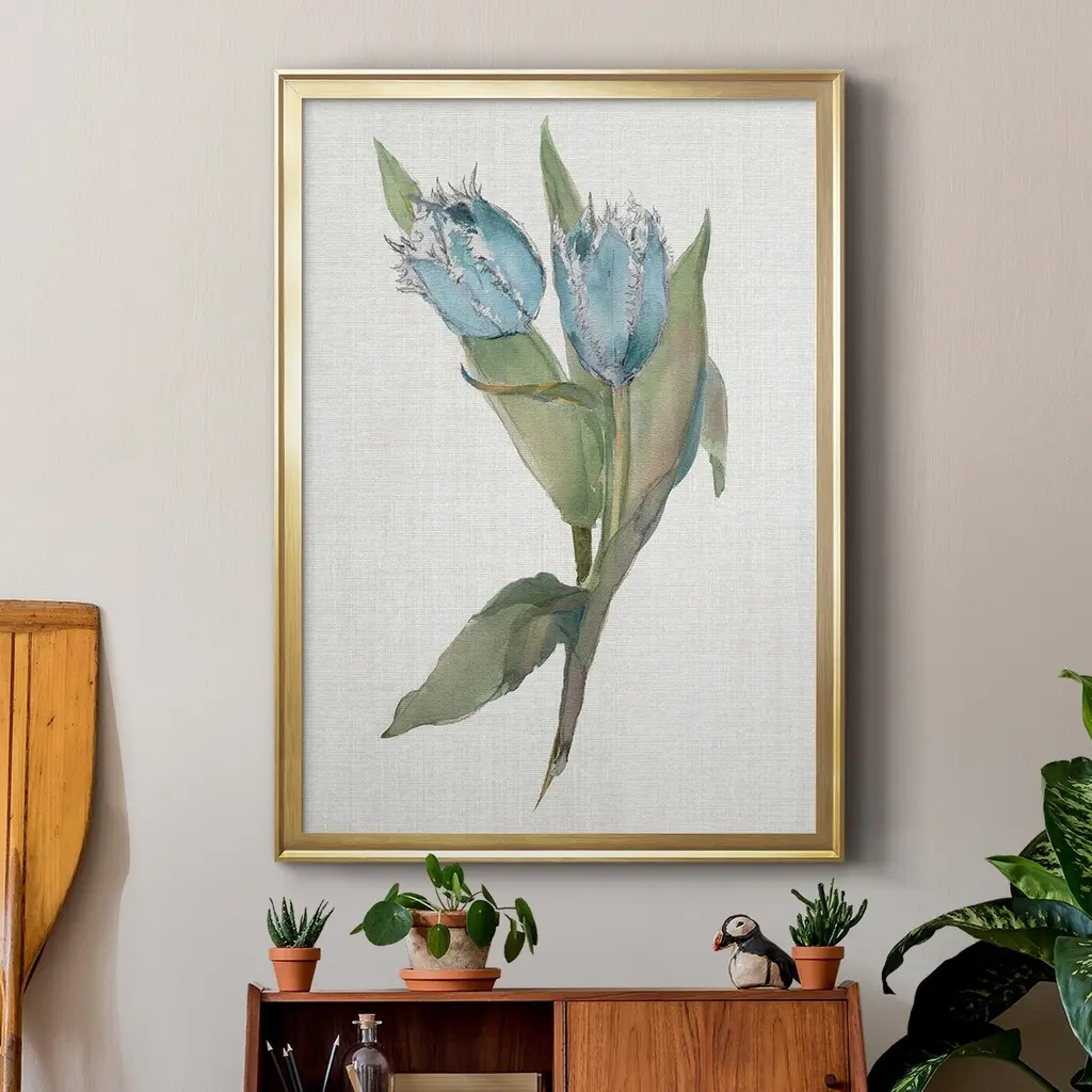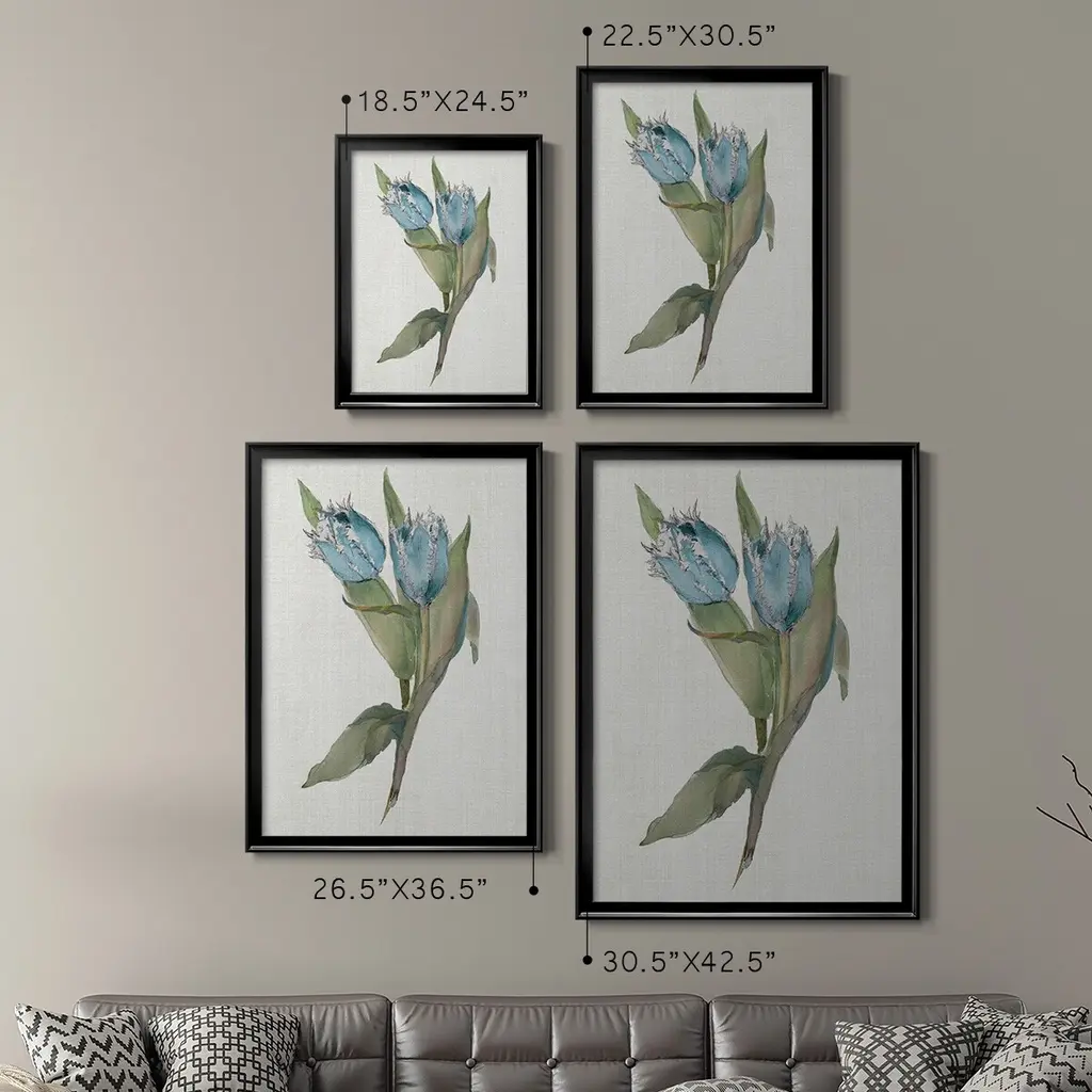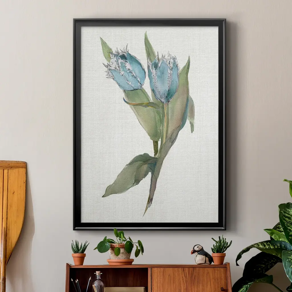 Blue Tulip Picks II Premium Framed Print - Ready to Hang A Premium Framed Print created to last. Framed in distressed wood and available in an array of sizes and colors Featuring a beveled a solid wood stretcher bar, each piece comes ready to hand 4 SIZES AVAILABLE 30.5''X42.5'' - Overall Size 26.5'X36.5'' - Overall Size 22.5''x30.5'' - Overall Size 18.5''x24.5'' - Overall Size Each piece is made to order. Each piece comes with hanging hardware. Made in the USA Ready to Hang