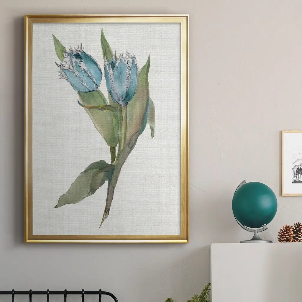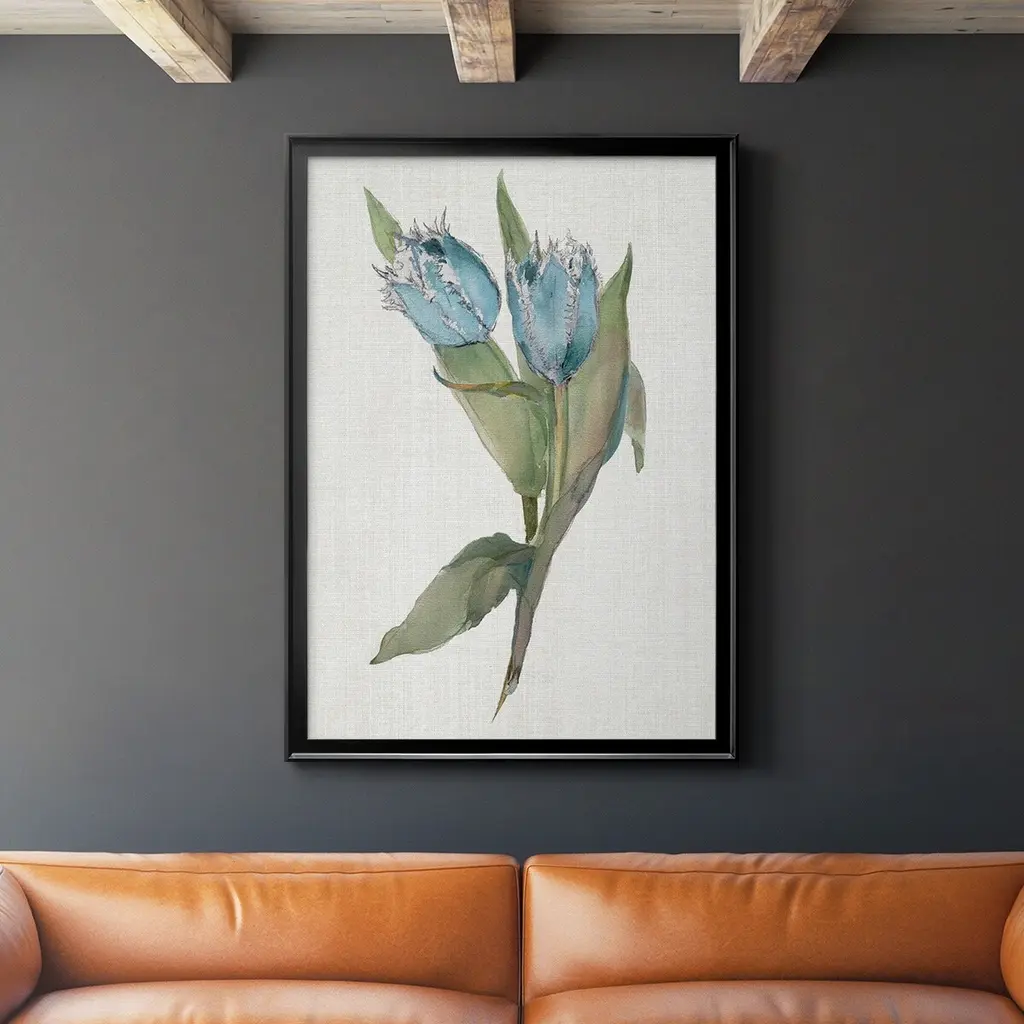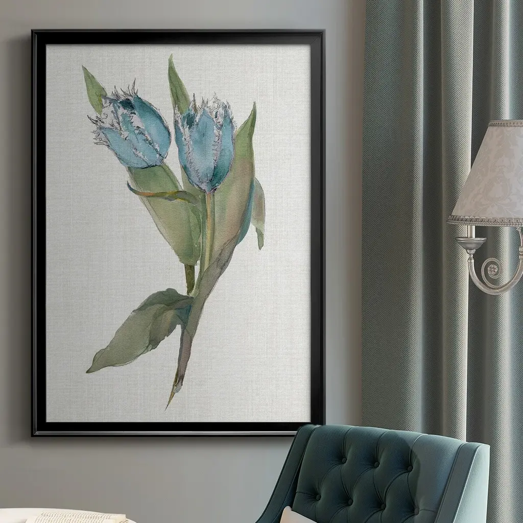 Blue Tulip Picks II Premium Framed Print - Ready to Hang A Premium Framed Print created to last. Framed in distressed wood and available in an array of sizes and colors Featuring a beveled a solid wood stretcher bar, each piece comes ready to hand 4 SIZES AVAILABLE 30.5''X42.5'' - Overall Size 26.5'X36.5'' - Overall Size 22.5''x30.5'' - Overall Size 18.5''x24.5'' - Overall Size Each piece is made to order. Each piece comes with hanging hardware. Made in the USA Ready to Hang