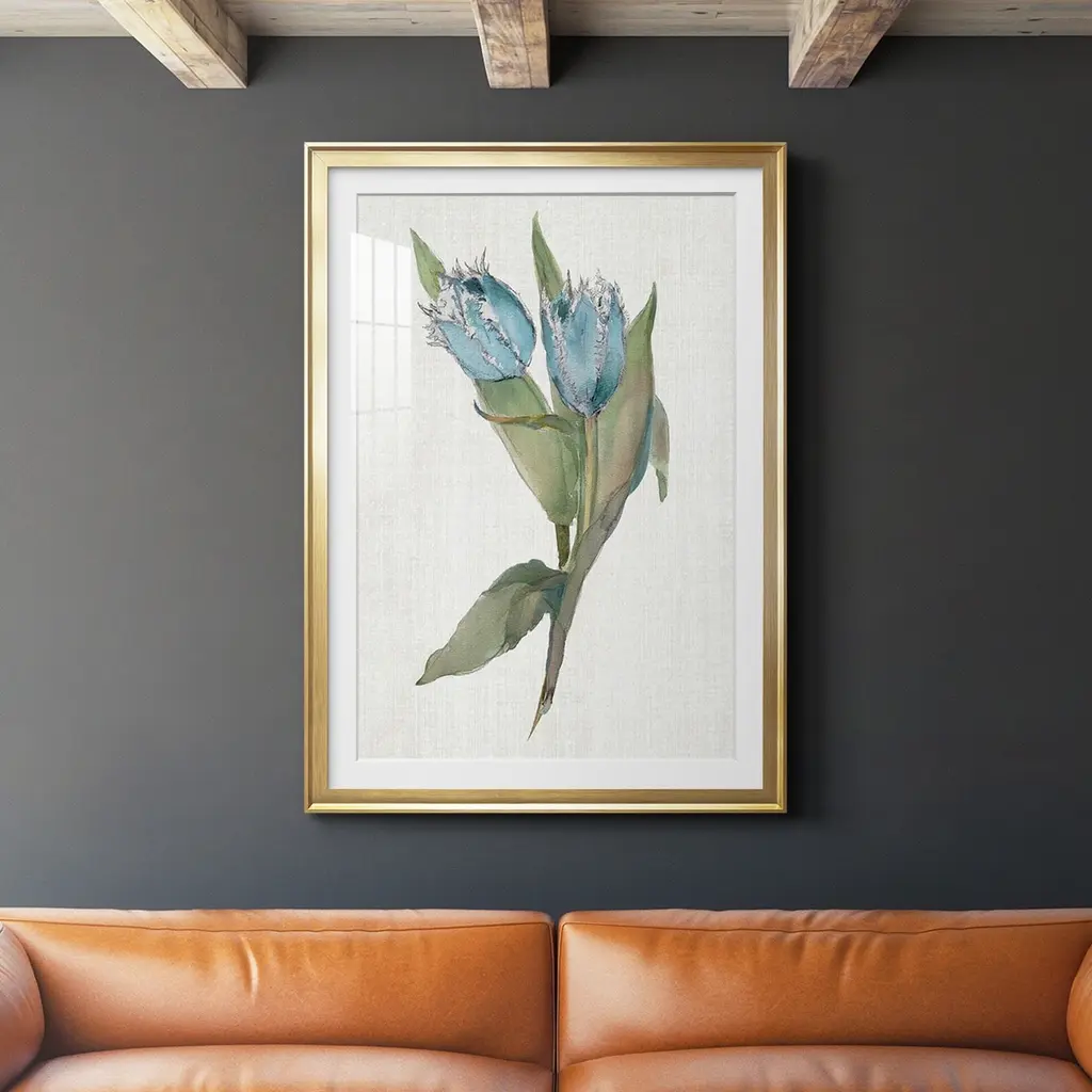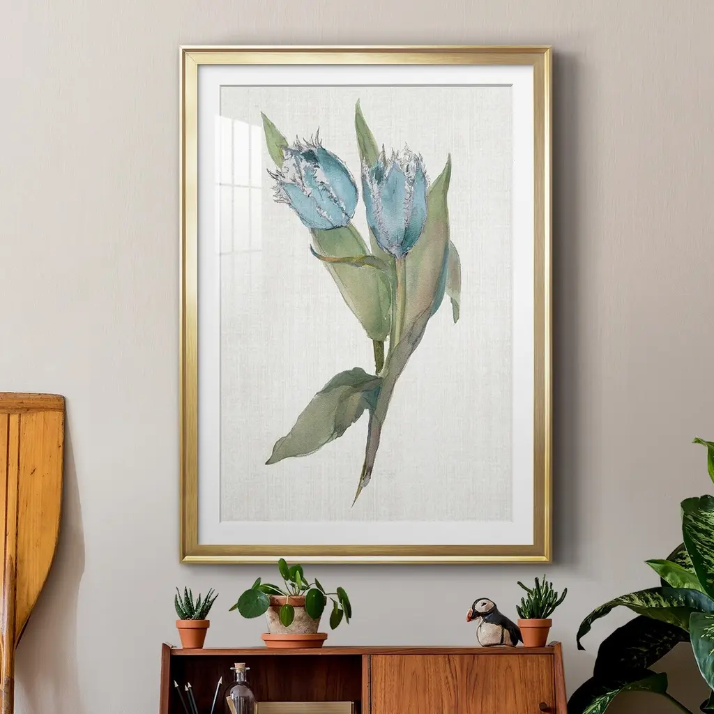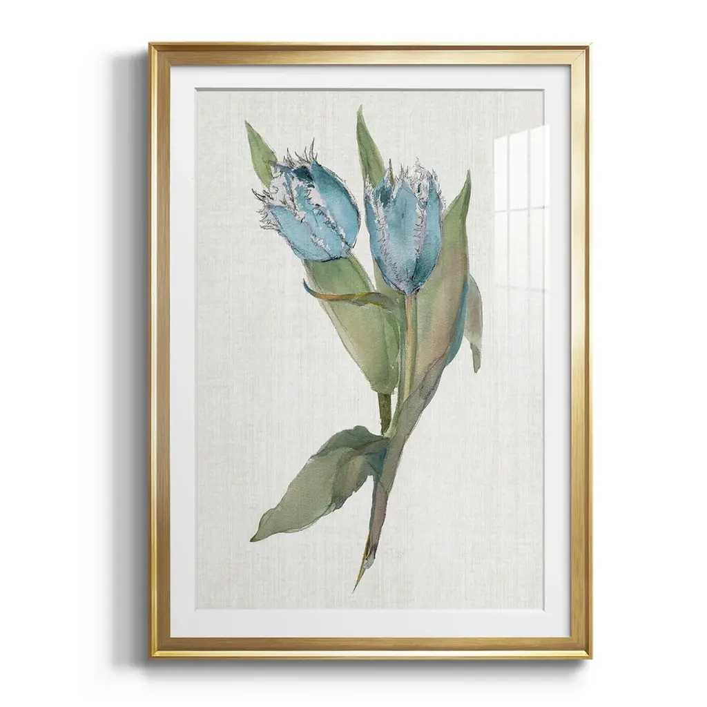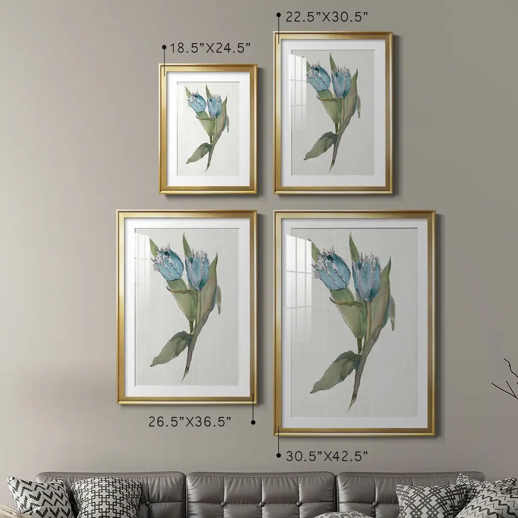 Blue Tulip Picks II Premium Framed Print - Ready to Hang A Premium Framed Print created to last. Framed in distressed wood and available in an array of sizes and colors Featuring a beveled a solid wood stretcher bar, each piece comes ready to hand 4 SIZES AVAILABLE 30.5''X42.5'' - Overall Size 26.5'X36.5'' - Overall Size 22.5''x30.5'' - Overall Size 18.5''x24.5'' - Overall Size Each piece is made to order. Each piece comes with hanging hardware. Made in the USA Ready to Hang Giclee Paper Print Acrylic Glass Beveled Matt Board