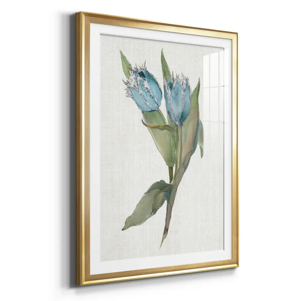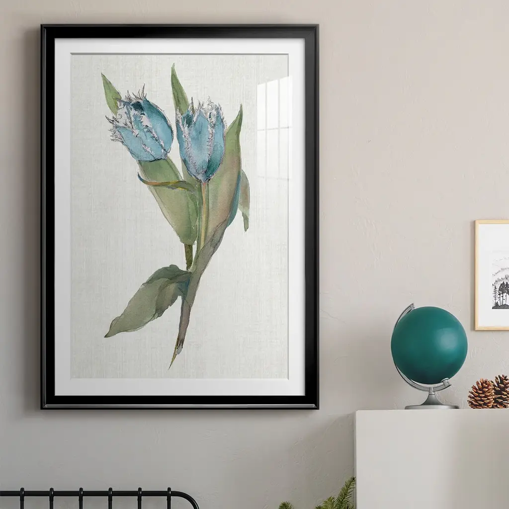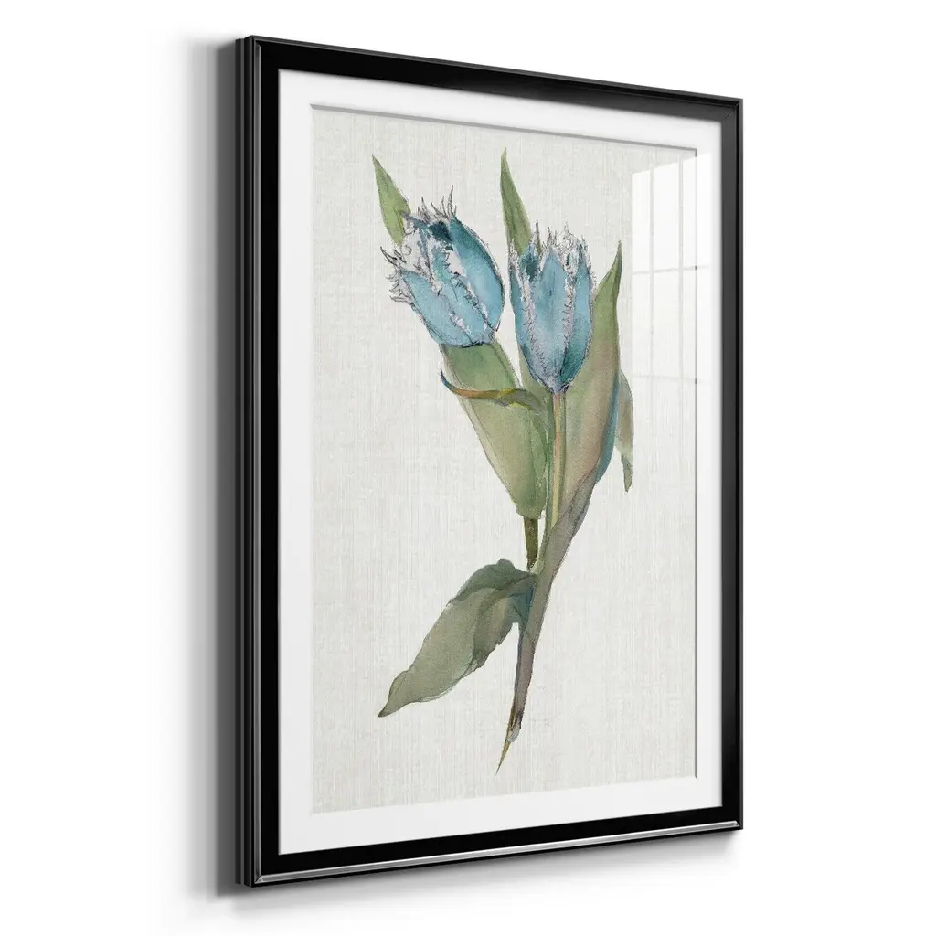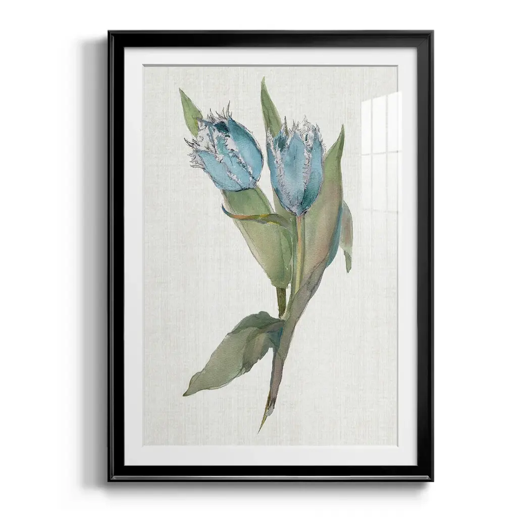 Blue Tulip Picks II Premium Framed Print - Ready to Hang A Premium Framed Print created to last. Framed in distressed wood and available in an array of sizes and colors Featuring a beveled a solid wood stretcher bar, each piece comes ready to hand 4 SIZES AVAILABLE 30.5''X42.5'' - Overall Size 26.5'X36.5'' - Overall Size 22.5''x30.5'' - Overall Size 18.5''x24.5'' - Overall Size Each piece is made to order. Each piece comes with hanging hardware. Made in the USA Ready to Hang Giclee Paper Print Acrylic Glass Beveled Matt Board