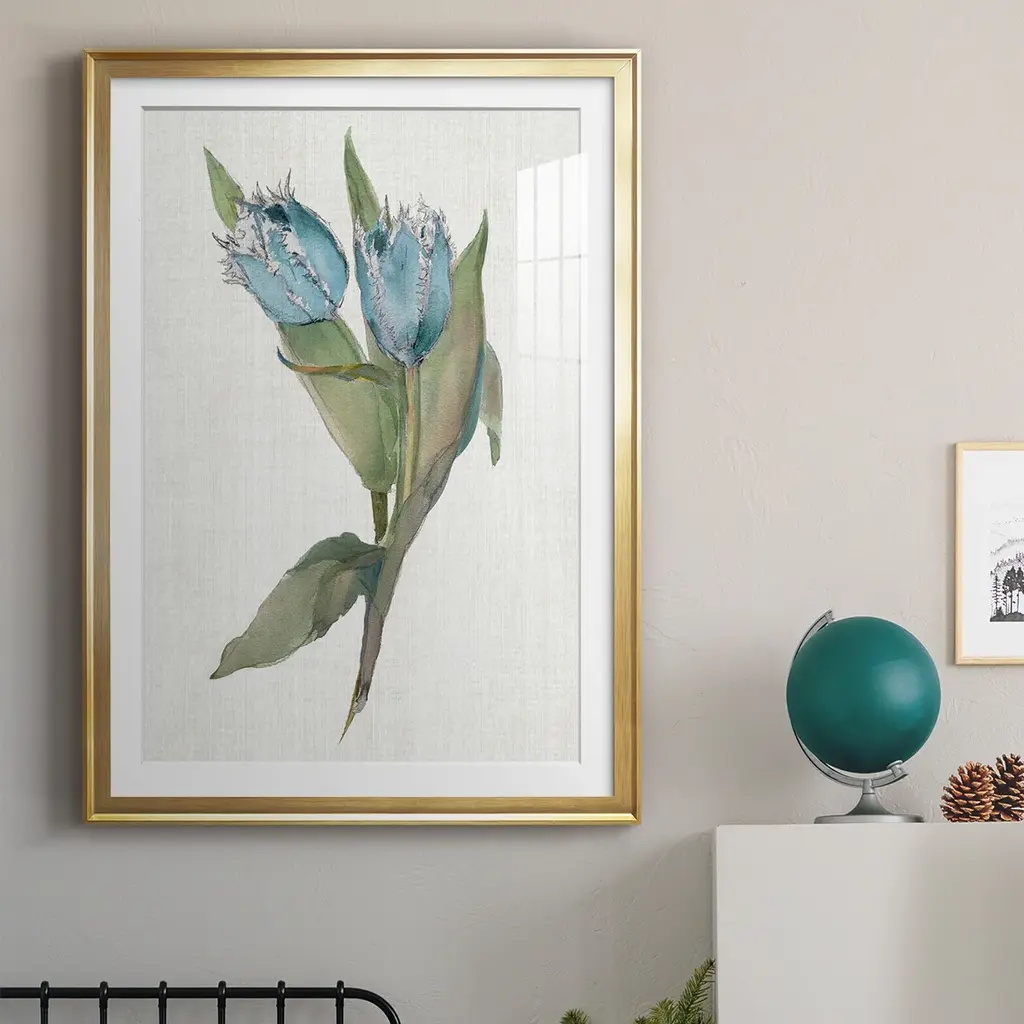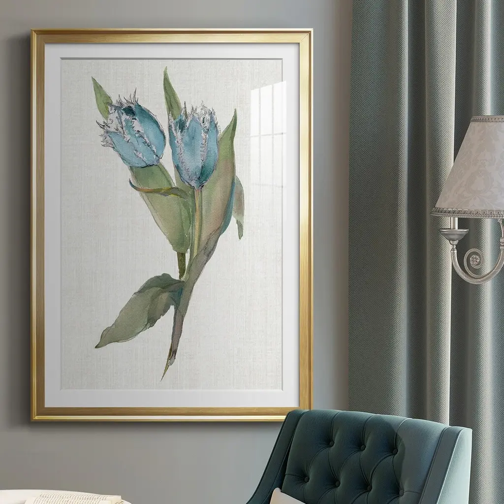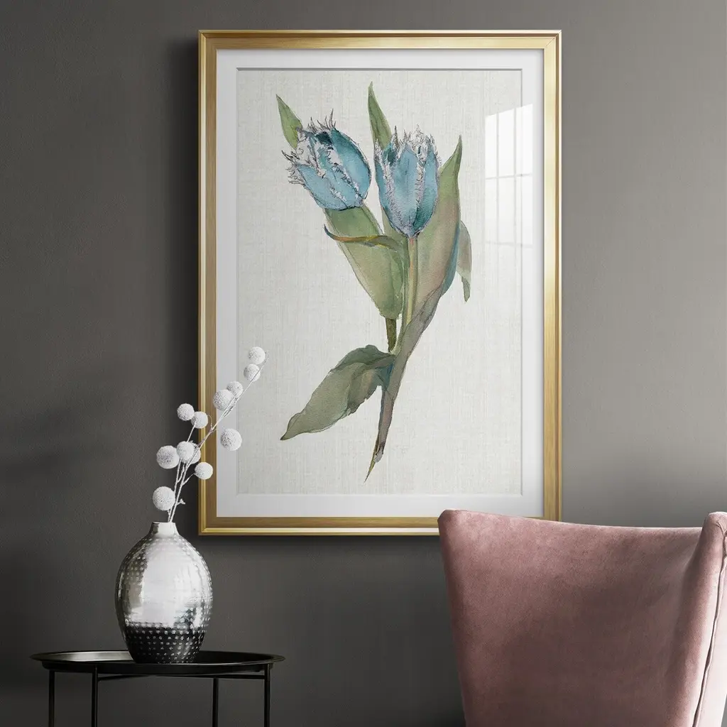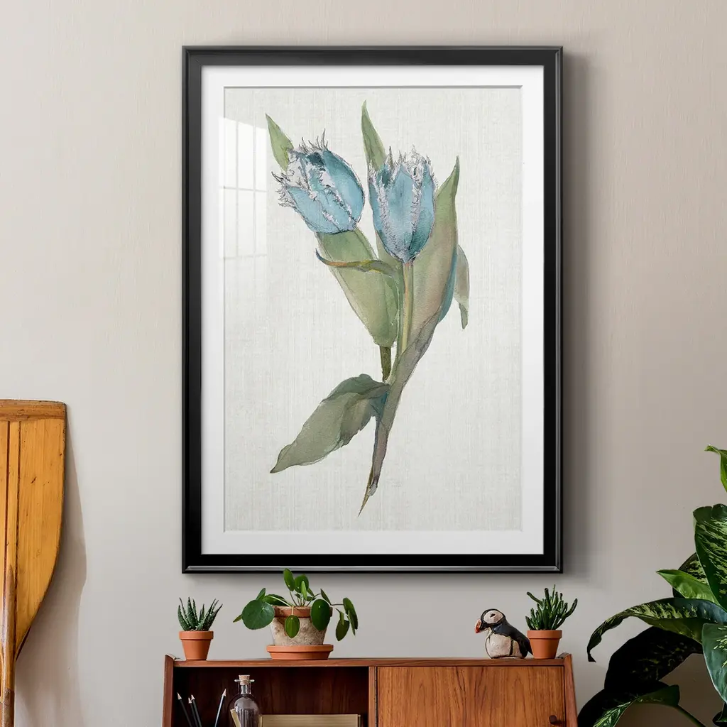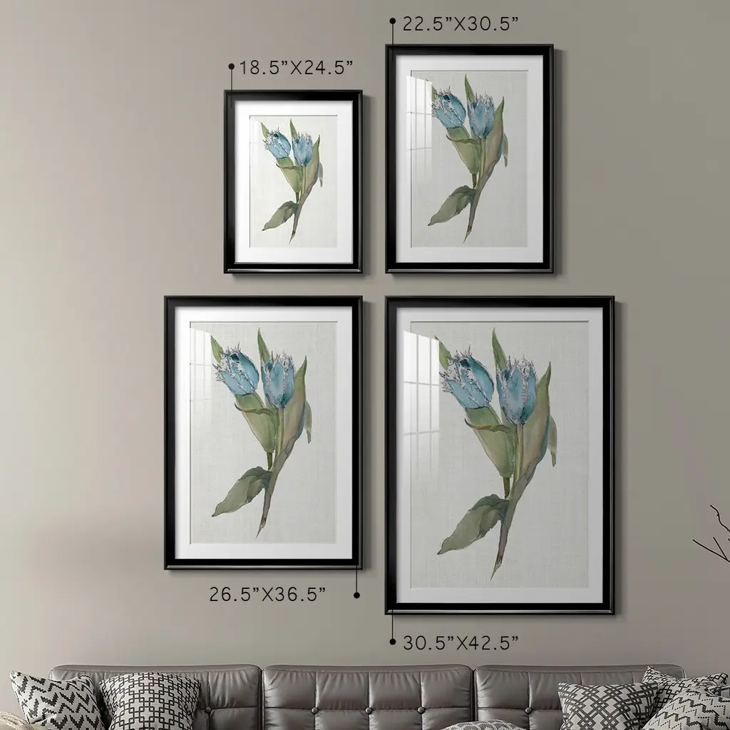 Blue Tulip Picks II Premium Framed Print - Ready to Hang A Premium Framed Print created to last. Framed in distressed wood and available in an array of sizes and colors Featuring a beveled a solid wood stretcher bar, each piece comes ready to hand 4 SIZES AVAILABLE 30.5''X42.5'' - Overall Size 26.5'X36.5'' - Overall Size 22.5''x30.5'' - Overall Size 18.5''x24.5'' - Overall Size Each piece is made to order. Each piece comes with hanging hardware. Made in the USA Ready to Hang Giclee Paper Print Acrylic Glass Beveled Matt Board