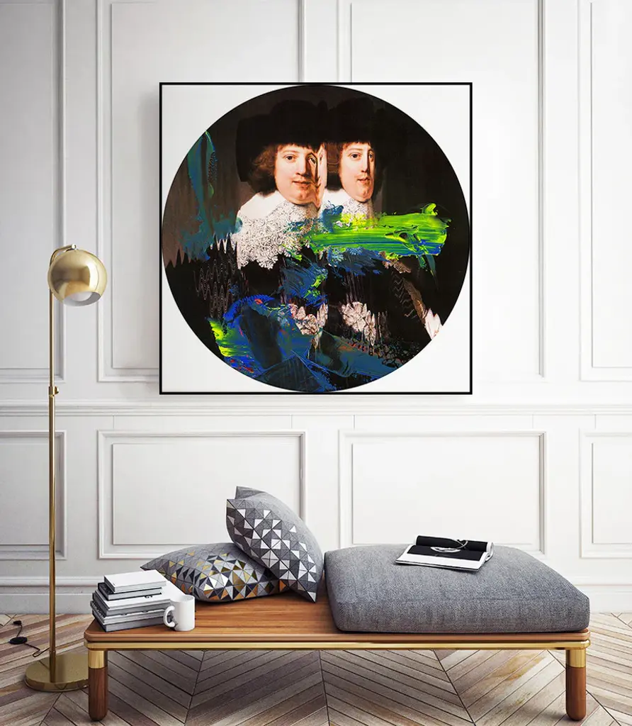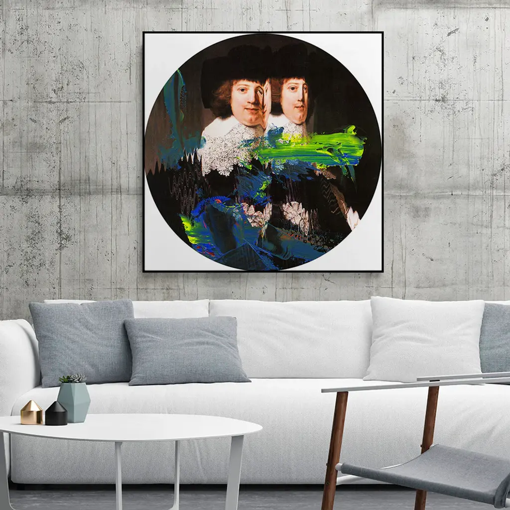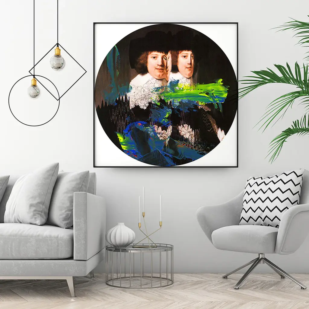 Your ready to hang artwork is printed on canvas then stretched and mounted to a 2-inch thick - hand stained black wood frame. Arrives at your door complete with an easy to use self-leveling hangking kit.