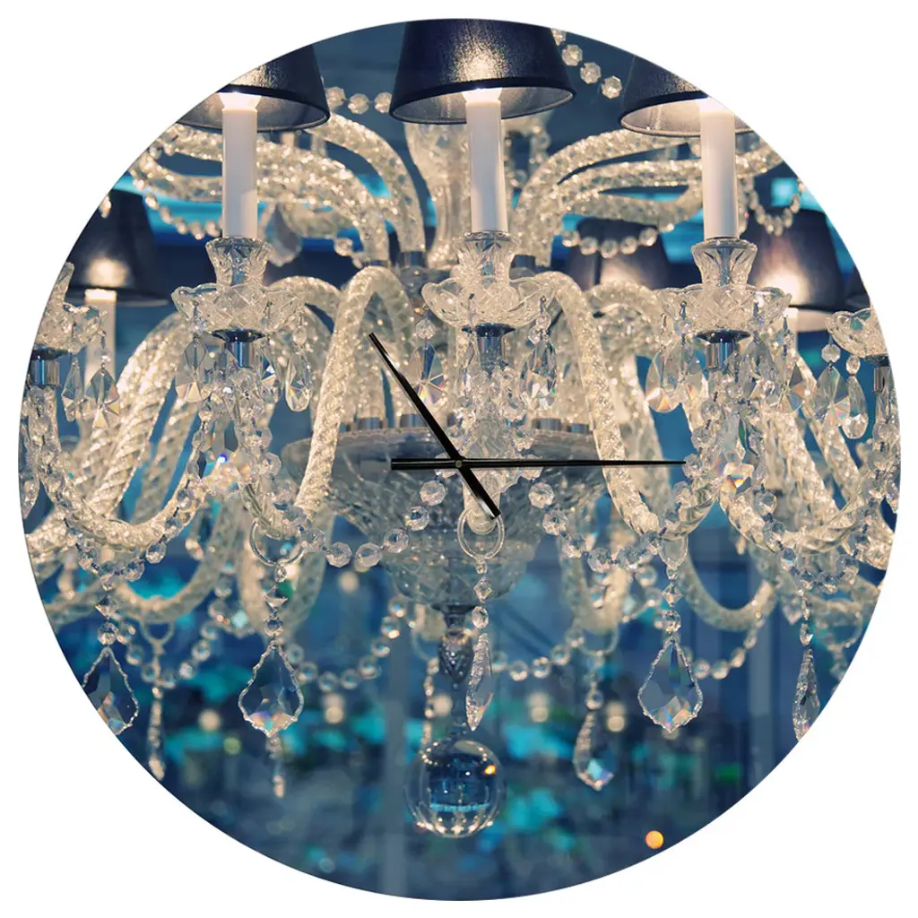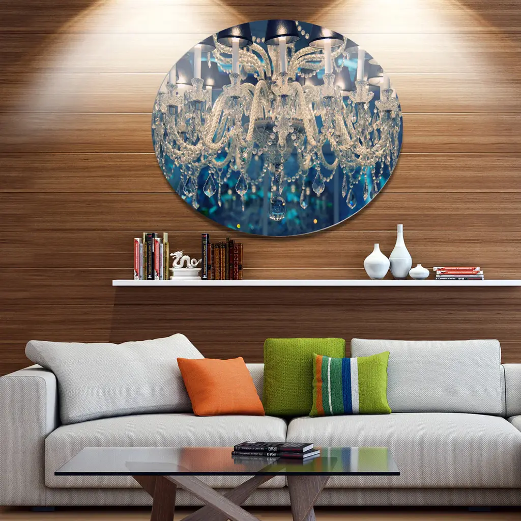 Bring Contemporary Abstraction to your home with this large Circle Metal wall art. This Blue Vintage Crystal Chandelier Metal Artwork makes it the focal point of any room or office. - White Gloss Coating ensures colors are extra vibrant with light reflection.- Aluminum grade Sheet Metal with 1 inch mounting frame on the back giving the illusion that the artwork is floating on the wall..- Mounting Brackets are included along with instructions.- High Quality Digital images are created directly into a glossy aluminum panel producing a stunning and captivating print into the glossy finish of the metal.- Water, Fire and Scratch resistant HD Aluminum panels.- Looks better than any photo paper and guaranteed to last at least 20 years- Easy to clean with a microfiber cloth. Colors are far superior to regular Canvas Art. - Easy to Hang