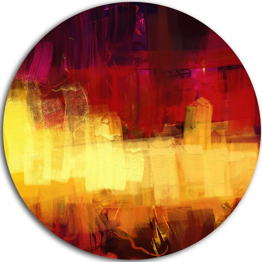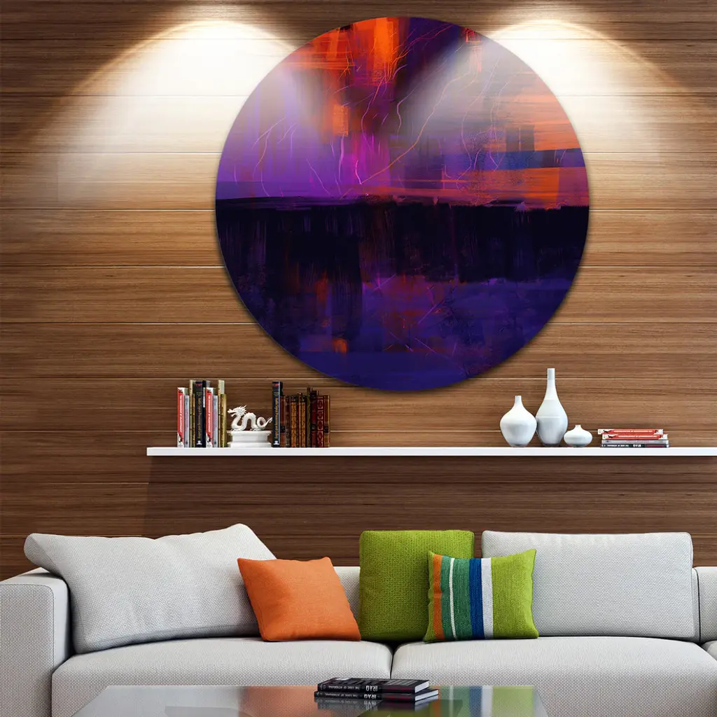 Bring Contemporary Abstraction to your home with this large Circle Metal wall art. This Blue Vs Red Textures Metal Artwork makes it the focal point of any room or office. - White Gloss Coating ensures colors are extra vibrant with light reflection.- Aluminum grade Sheet Metal with 1 inch mounting frame on the back giving the illusion that the artwork is floating on the wall..- Mounting Brackets are included along with instructions.- High Quality Digital images are created directly into a glossy aluminum panel producing a stunning and captivating print into the glossy finish of the metal.- Water, Fire and Scratch resistant HD Aluminum panels.- Looks better than any photo paper and guaranteed to last at least 20 years- Easy to clean with a microfiber cloth. Colors are far superior to regular Canvas Art. - Easy to Hang