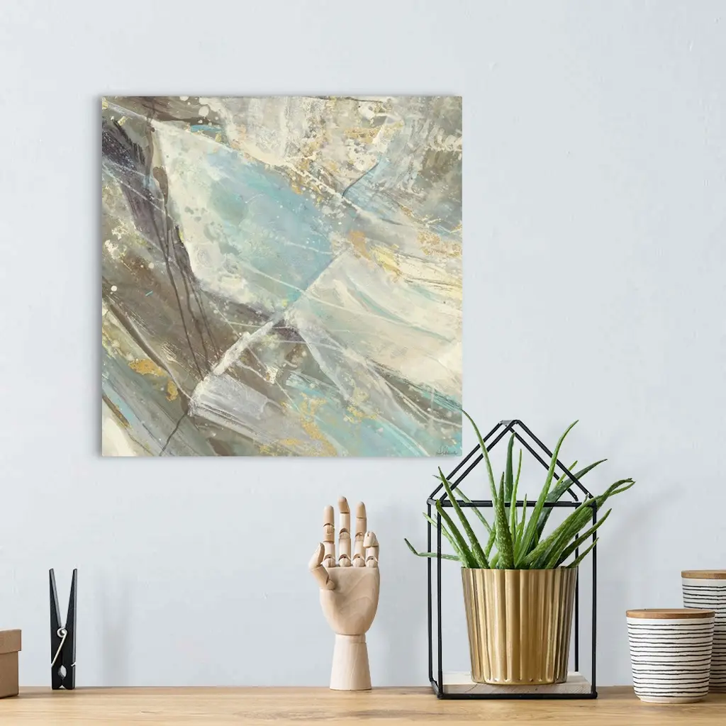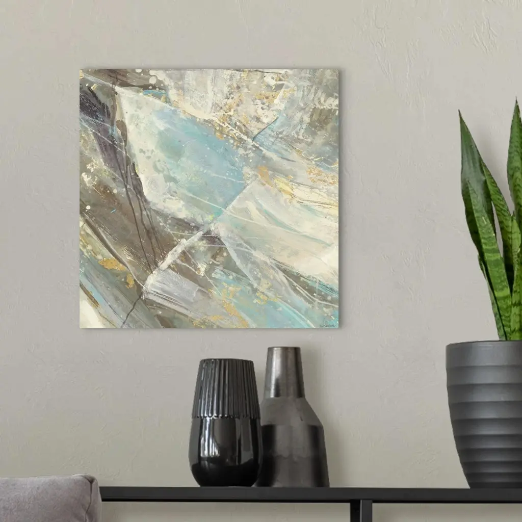 Contemporary abstract painting using distinct lines and subtle colors to create depth.