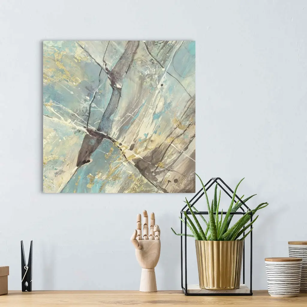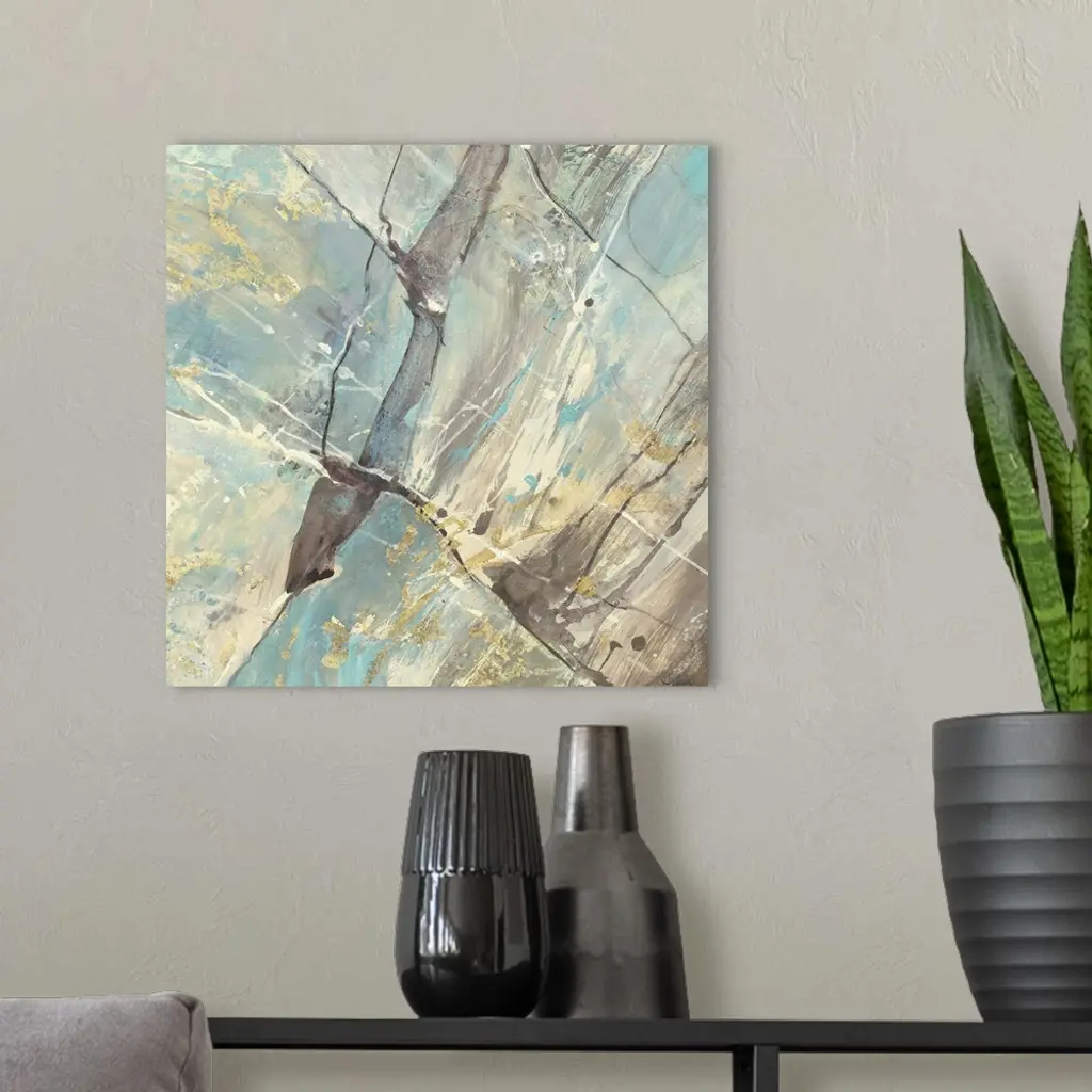 Contemporary abstract painting using distinct lines and subtle colors to create depth.