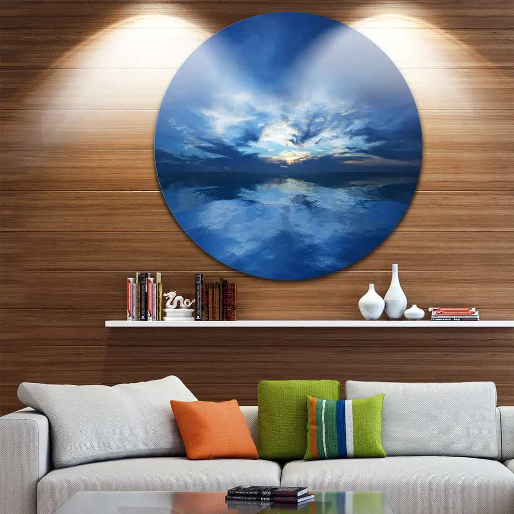 Blue Waters And Blue Sky Sunset, Seascape Round Metal Wall Art, 36"