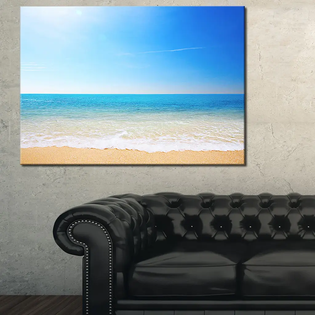 The Blue Waves at Tropical Beach canvas art print is sure to make an impression on anyone who sees it. This artwork is gallery wrapped around a 1-inch solid wood frame and arrives carefully packaged and entirely ready to hang on the wall. Design Art only uses the highest resolution and pigments to ensure a crisp colorful print that is never faded or pixelated. This artwork is sure to be a conversation starter in any home or office.
