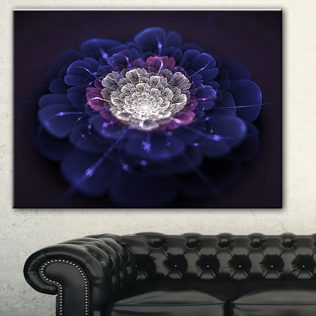 The Blue White Fractal Flowers canvas art print is sure to make an impression on anyone who sees it. This artwork is gallery wrapped around a 1-inch solid wood frame and arrives carefully packaged and entirely ready to hang on the wall. Design Art only uses the highest resolution and pigments to ensure a crisp colorful print that is never faded or pixelated. This artwork is sure to be a conversation starter in any home or office.