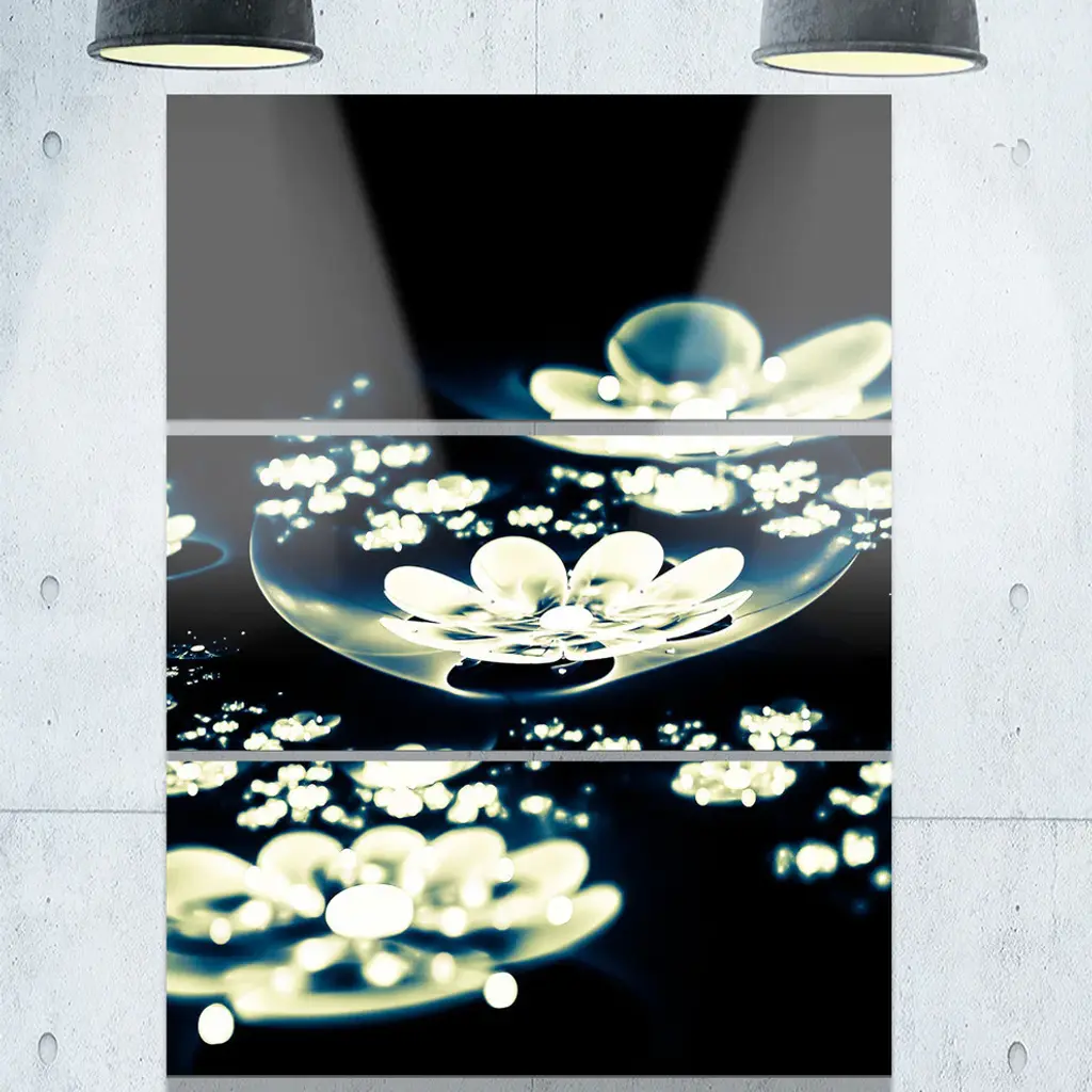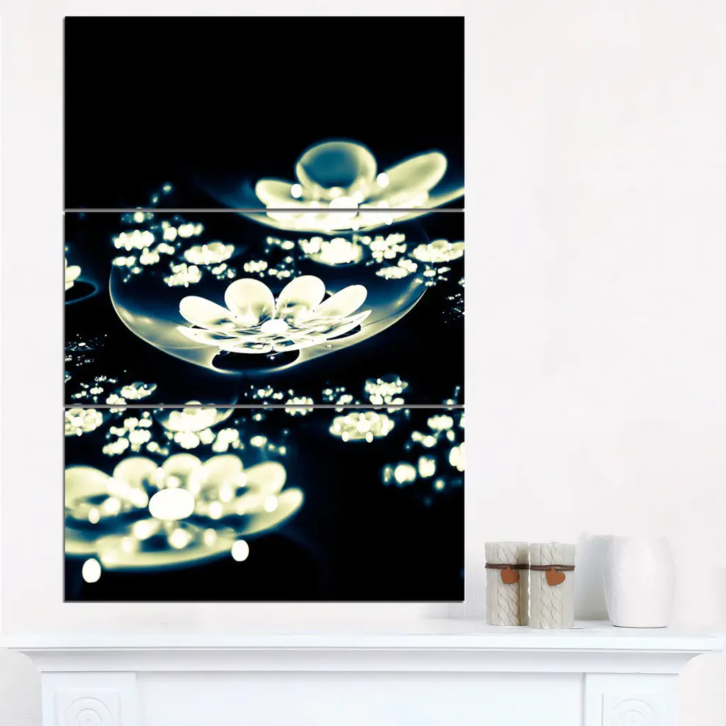 "Blue White Fractal Flowers In Dark" Metal Wall Art, 3 Panels, 28"x36"