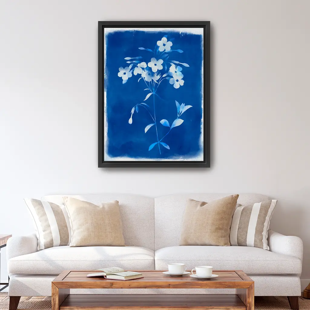 Introduce a touch of elegance to your home with"Blue Wild Flowers" canvas art by Gia Hoang. Featuring delicate blue flowers beautifully rendered in elegant detail, this artwork adds a sophisticated and serene touch to any room. The calming blue hues create a peaceful atmosphere, making it a perfect addition to both modern and classic interiors. Available in black frame, dark walnut frame, oak frame, or as a wrapped canvas. Our Gallery Wrap Canvas Prints are proudly assembled with high quality materials in California, USA. Each piece is printed on a thick, archival grade canvas using Giclee technology. It is then hand-stretched by our experienced artisans over solid wood bars, which will not warp over time. The final product is a piece personally crafted for you to confidently display on your wall. Care and Assembly: Ensure that the location of your piece has little to no exposure to heat, sunlight, and moisture. Wipe clean, only if needed. Each piece includes a sawtooth hanger to hang on your wall vertically.