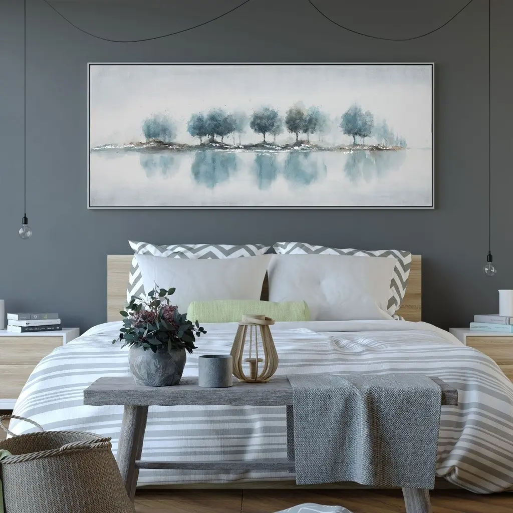 Blue Woods, Hand Painted Framed Canvas - 73 X 31 - Plastic - Silver