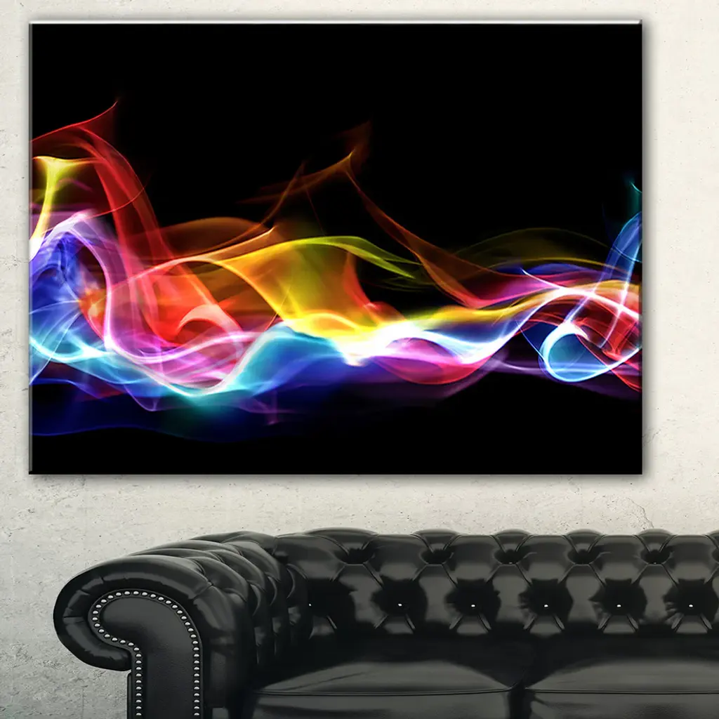 "Blue Yellow Waves In Black" Abstract Digital Art Canvas Print