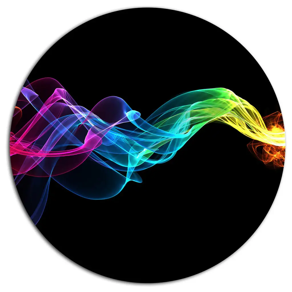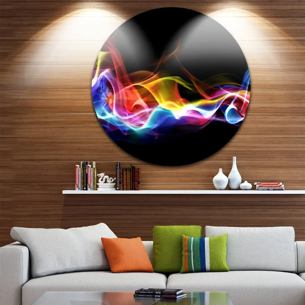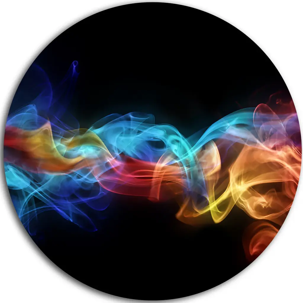 Bring Contemporary Abstraction to your home with this large Circle Metal wall art. This Blue Yellow Waves in Black Metal Artwork makes it the focal point of any room or office. - White Gloss Coating ensures colors are extra vibrant with light reflection.- Aluminum grade Sheet Metal with 1 inch mounting frame on the back giving the illusion that the artwork is floating on the wall..- Mounting Brackets are included along with instructions.- High Quality Digital images are created directly into a glossy aluminum panel producing a stunning and captivating print into the glossy finish of the metal.- Water, Fire and Scratch resistant HD Aluminum panels.- Looks better than any photo paper and guaranteed to last at least 20 years- Easy to clean with a microfiber cloth. Colors are far superior to regular Canvas Art. - Easy to Hang