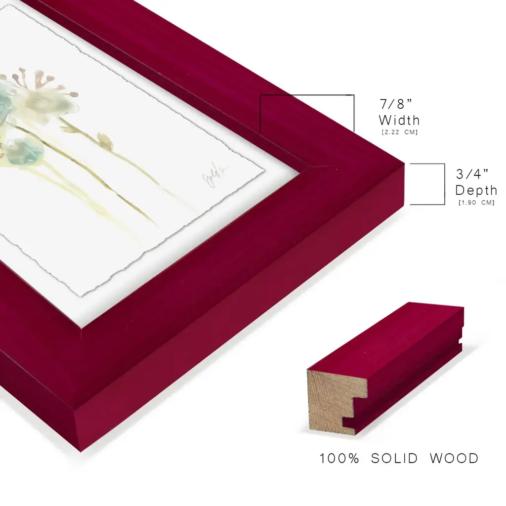 Bluebell I -EZ SWITCH Framed Print w/glass-Cherry Red A delightful, framed print. Featuring a solid wood frame with real wood glass. This premium print is giclee quality. In addition, every frame features a removable back and table top stand. This allows you to change your art in the future or to just stand the art on a table for a new look. We are sure you'll enjoy our new series of EZ SWITCH Framed Art. Solid Wood Frame Real Glass Removable / Replaceable Art Built in Tabletop Stand Sizes range from 4x6 up to 12x15 - buy just one or pair them up as sets as you see fit.