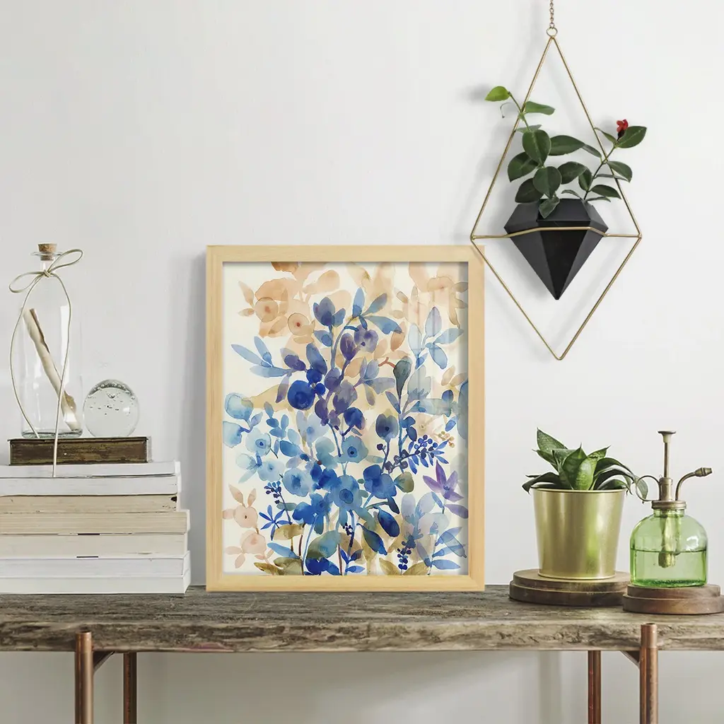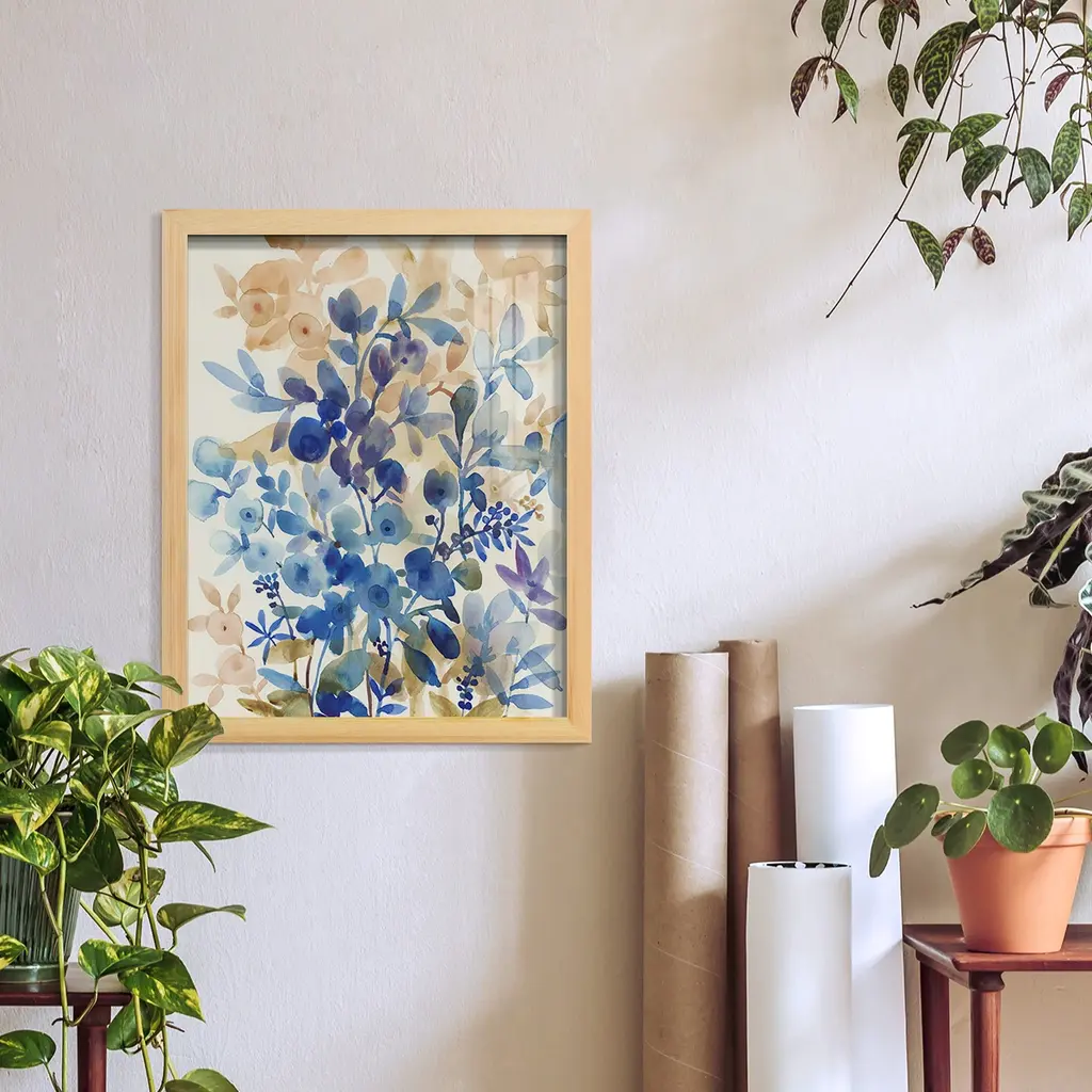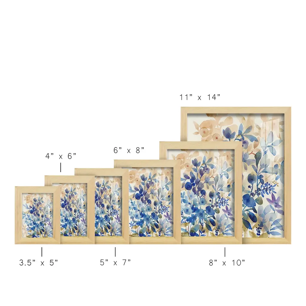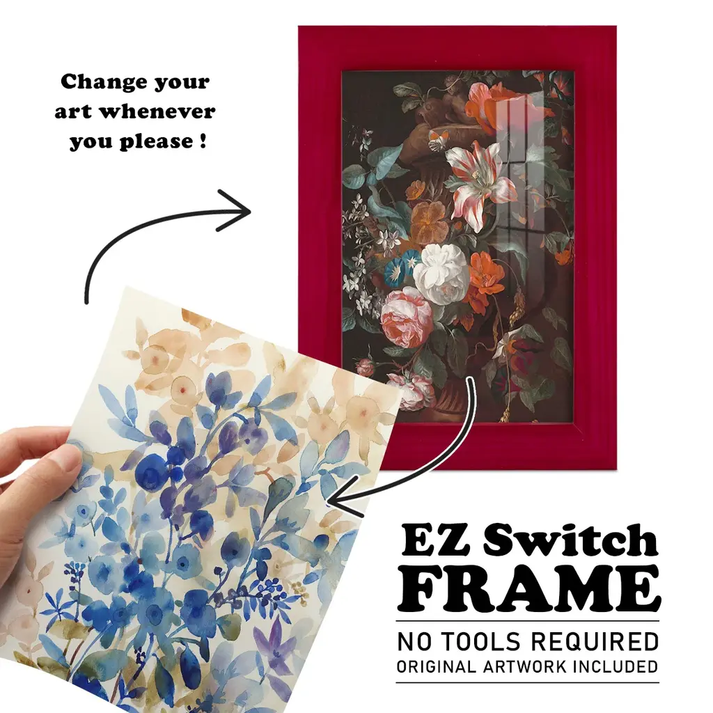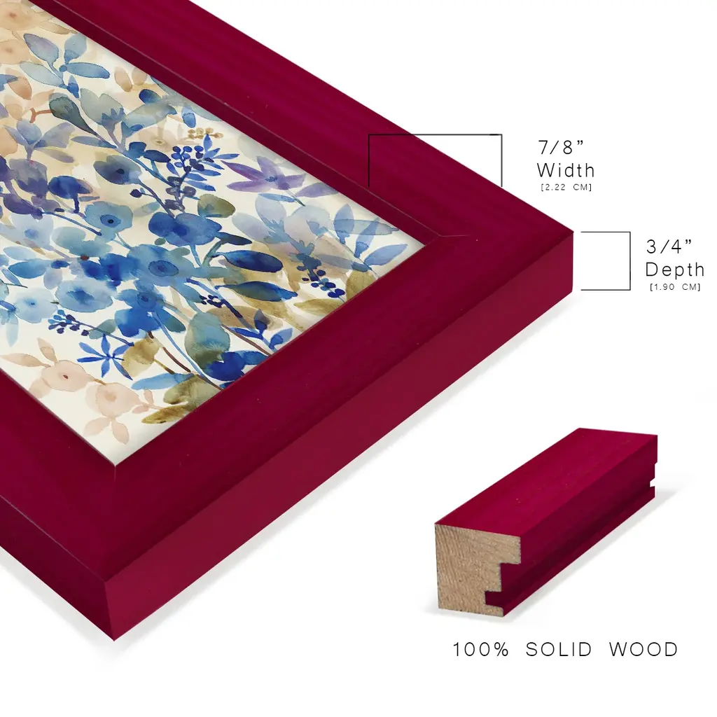 Blueberry Floral I -EZ SWITCH Framed Print w/glass-Cherry Red A delightful, framed print. Featuring a solid wood frame with real wood glass. This premium print is giclee quality. In addition, every frame features a removable back and table top stand. This allows you to change your art in the future or to just stand the art on a table for a new look. We are sure you'll enjoy our new series of EZ SWITCH Framed Art. Solid Wood Frame Real Glass Removable / Replaceable Art Built in Tabletop Stand Sizes range from 4x6 up to 12x15 - buy just one or pair them up as sets as you see fit.