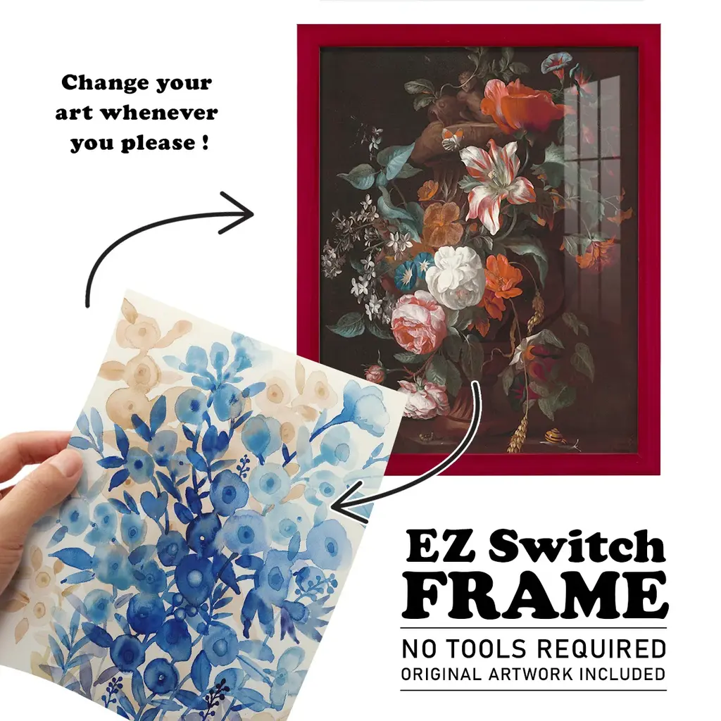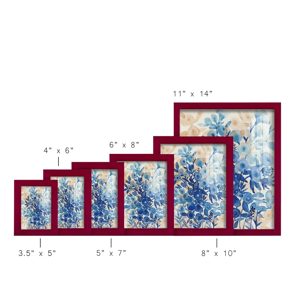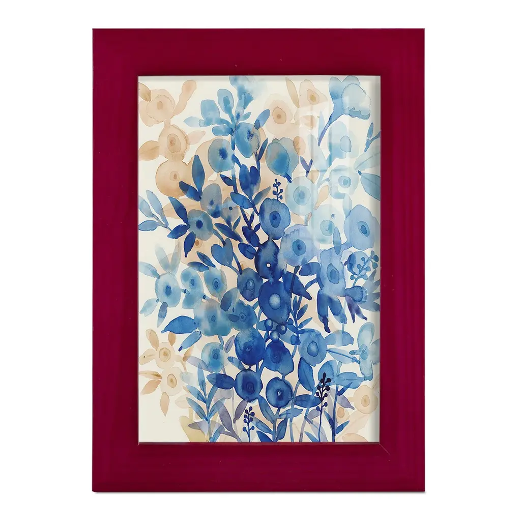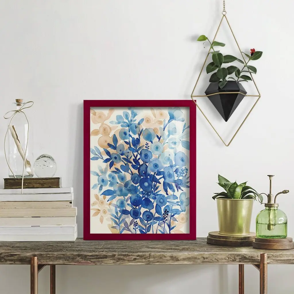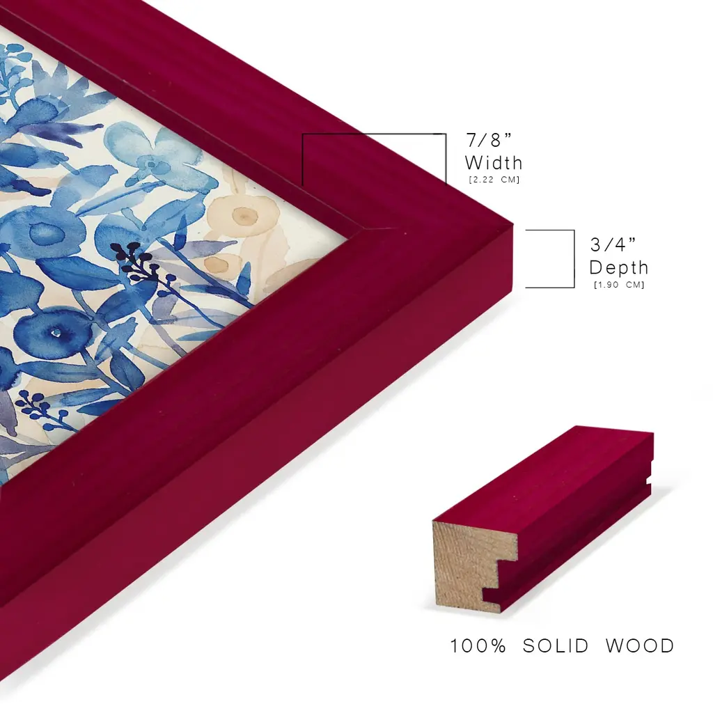 Blueberry Floral II -EZ SWITCH Framed Print w/glass-Cherry Red A delightful, framed print. Featuring a solid wood frame with real wood glass. This premium print is giclee quality. In addition, every frame features a removable back and table top stand. This allows you to change your art in the future or to just stand the art on a table for a new look. We are sure you'll enjoy our new series of EZ SWITCH Framed Art. Solid Wood Frame Real Glass Removable / Replaceable Art Built in Tabletop Stand Sizes range from 4x6 up to 12x15 - buy just one or pair them up as sets as you see fit.