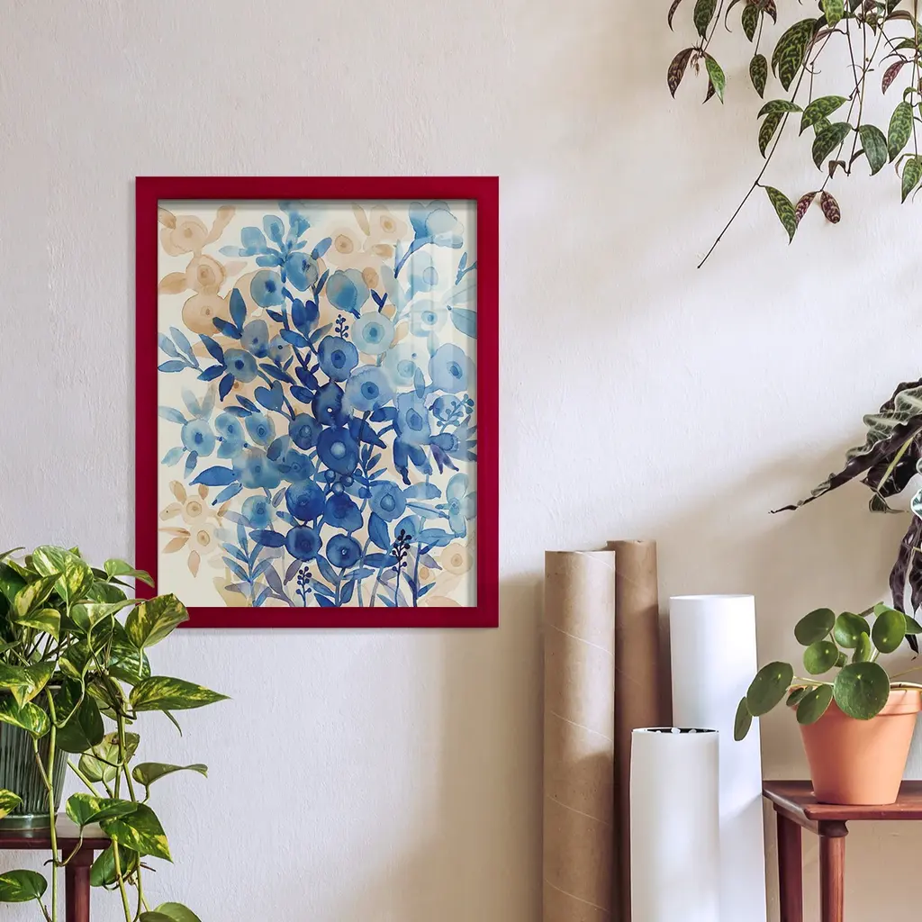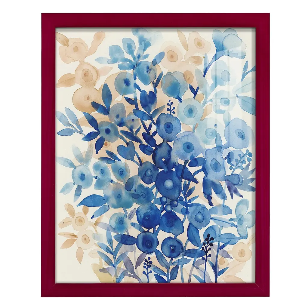 Blueberry Floral Ii -Framed Print W/glass-Cherry Red - 12x15 - Maple