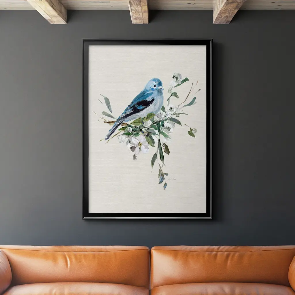 Bluebird Happy I Premium Framed Print - Ready to Hang A Premium Framed Print created to last. Framed in distressed wood and available in an array of sizes and colors Featuring a beveled a solid wood stretcher bar, each piece comes ready to hand 4 SIZES AVAILABLE 30.5''X42.5'' - Overall Size 26.5'X36.5'' - Overall Size 22.5''x30.5'' - Overall Size 18.5''x24.5'' - Overall Size Each piece is made to order. Each piece comes with hanging hardware. Made in the USA Ready to Hang