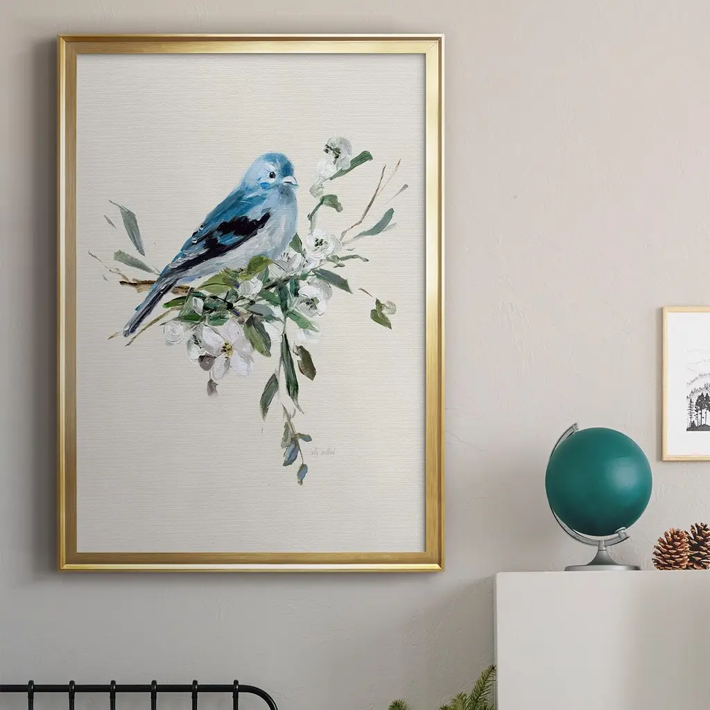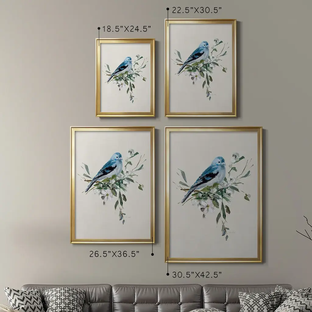 Bluebird Happy I Premium Framed Print - Ready to Hang A Premium Framed Print created to last. Framed in distressed wood and available in an array of sizes and colors Featuring a beveled a solid wood stretcher bar, each piece comes ready to hand 4 SIZES AVAILABLE 30.5''X42.5'' - Overall Size 26.5'X36.5'' - Overall Size 22.5''x30.5'' - Overall Size 18.5''x24.5'' - Overall Size Each piece is made to order. Each piece comes with hanging hardware. Made in the USA Ready to Hang