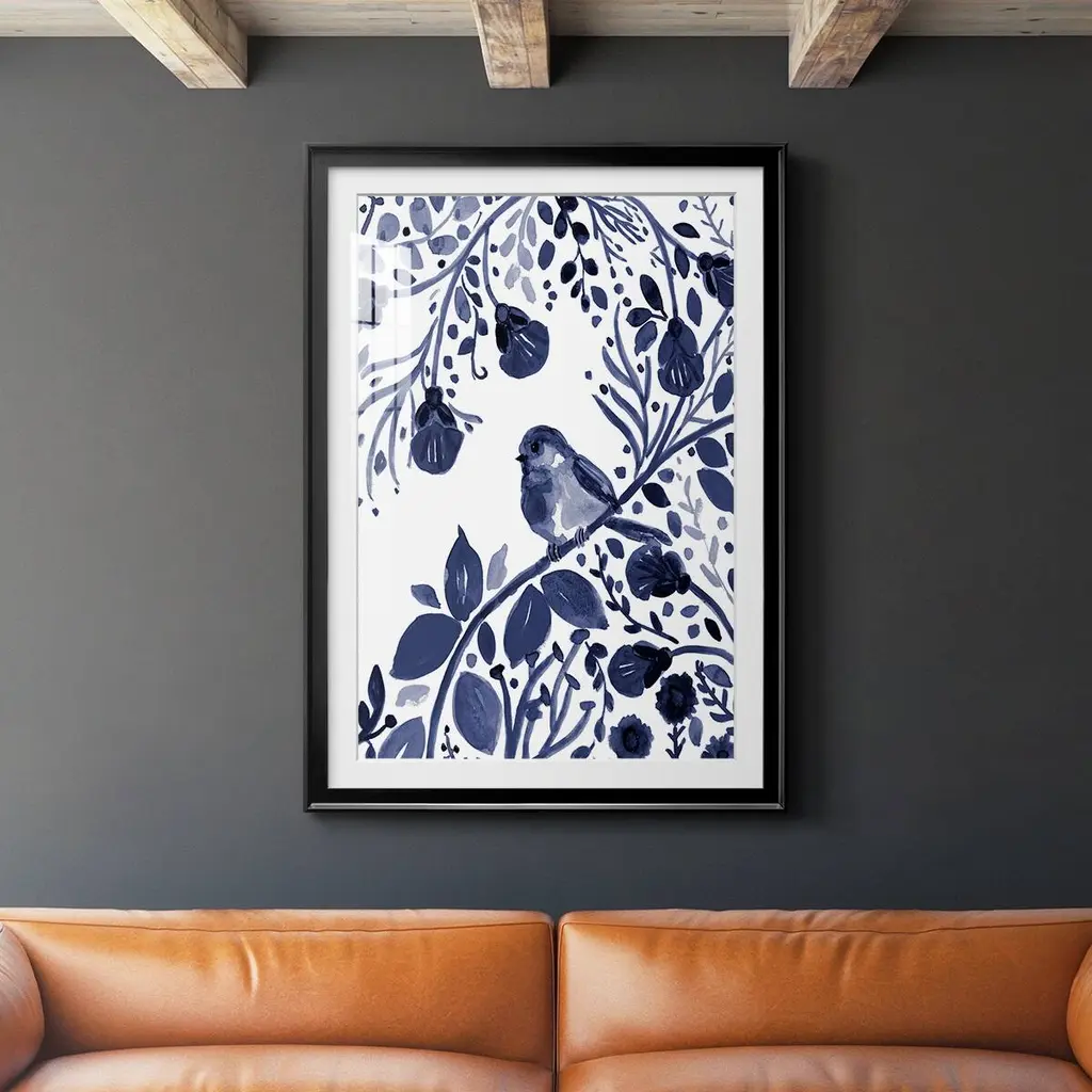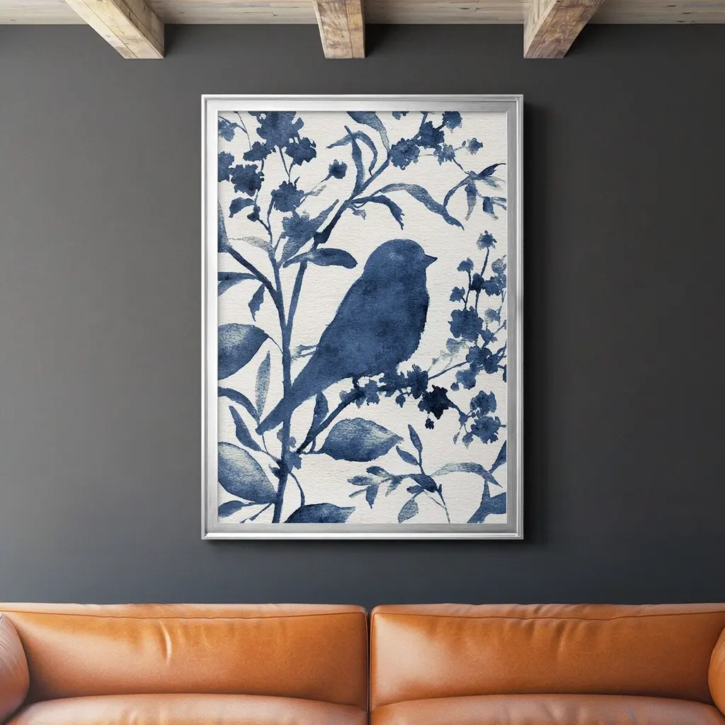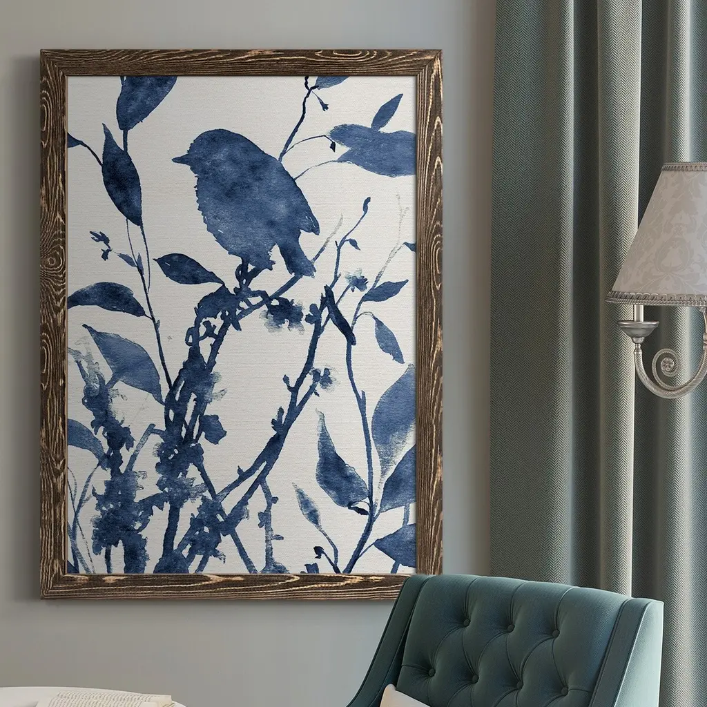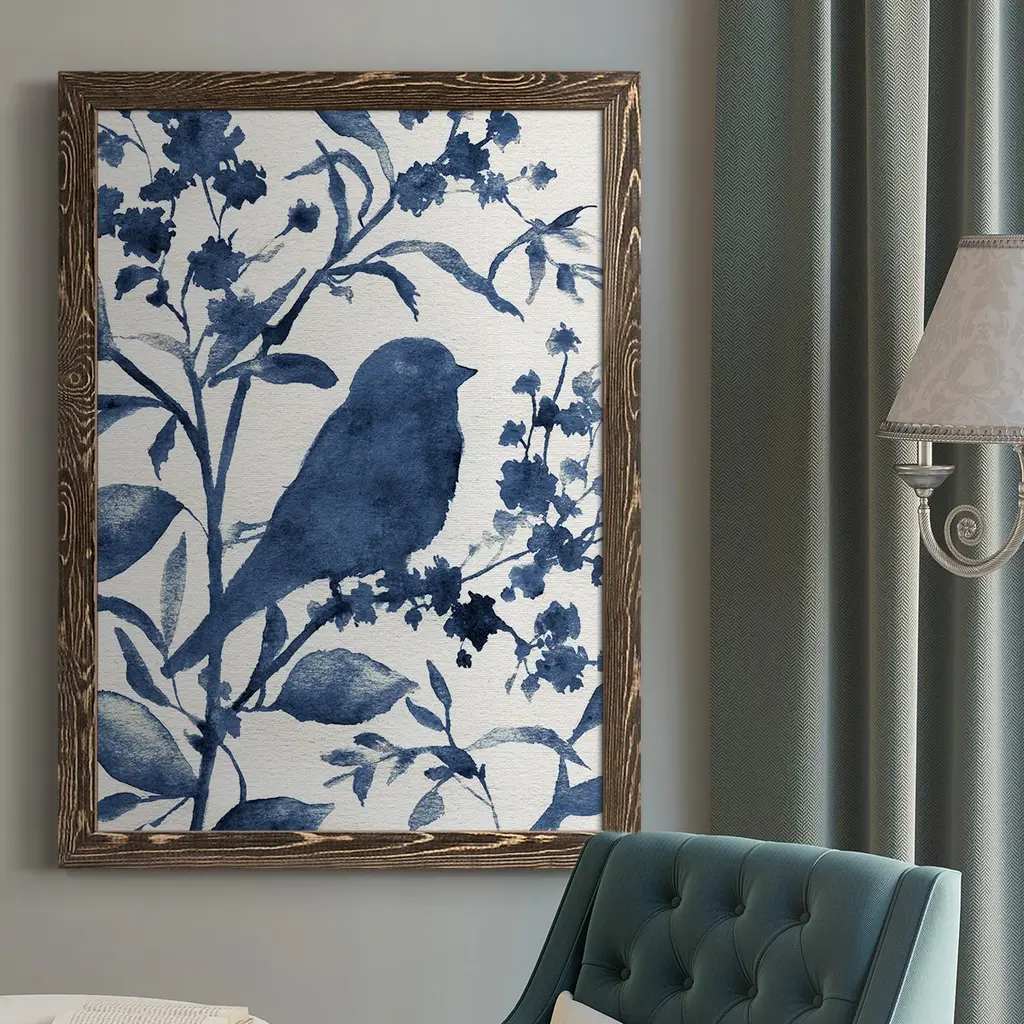 Bluebird Silhouette II Premium Framed Print - Ready to Hang A Premium Framed Print created to last. Framed in distressed wood and available in an array of sizes and colors Featuring a beveled a solid wood stretcher bar, each piece comes ready to hand 4 SIZES AVAILABLE 30.5''X42.5'' - Overall Size 26.5'X36.5'' - Overall Size 22.5''x30.5'' - Overall Size 18.5''x24.5'' - Overall Size Each piece is made to order. Each piece comes with hanging hardware. Made in the USA Ready to Hang